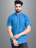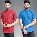 Mens Regular Fit Maroon and Teal Blue Half Sleeve Cotton Short Kurta Combo