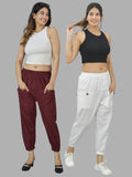Combo Pack Of Womens Maroon And White Four Pocket Cotton Cargo Pants