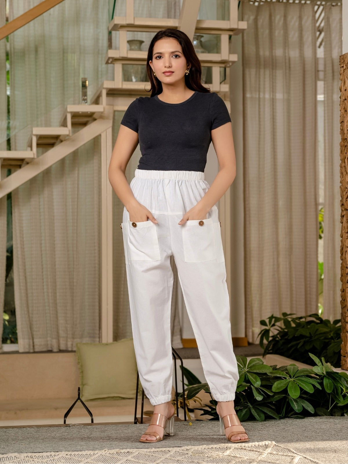 Quaclo's Combo Pack Of Womens Four Pocket Cotton Cargo Pants will amaze you with its unmatched comfort and style. The softness and breathability of these flexible cargo pants are precisely constructed from the finest pure cotton. While the fully elastic waistband guarantees a perfect fit and extra flexibility, the ankle elastic provides a trendy touch and allows you to show off your preferred shoes. Whether you're relaxing at home, heading out or going on an adventure, these cargo pants are your go-to choice. The Pure Cotton Four Pocket Cargo Pants for Women by Quaclo are the perfect combination of fashion and function. Order this essential item right away as feasible to enhance your entire look.