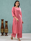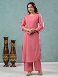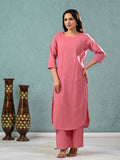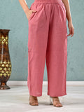Womens Solid Mauve Pink Cotton Kurta Plazzo Set