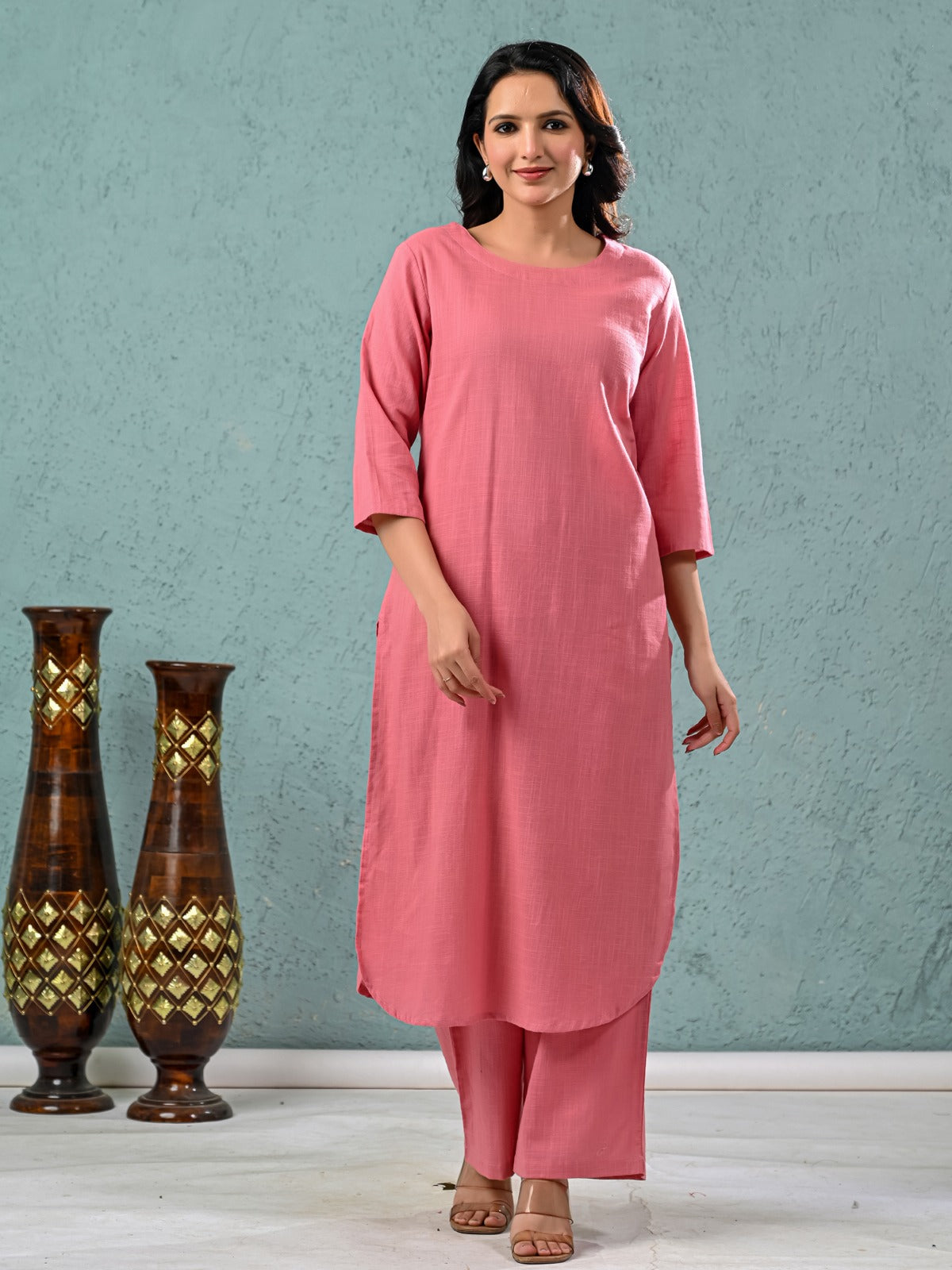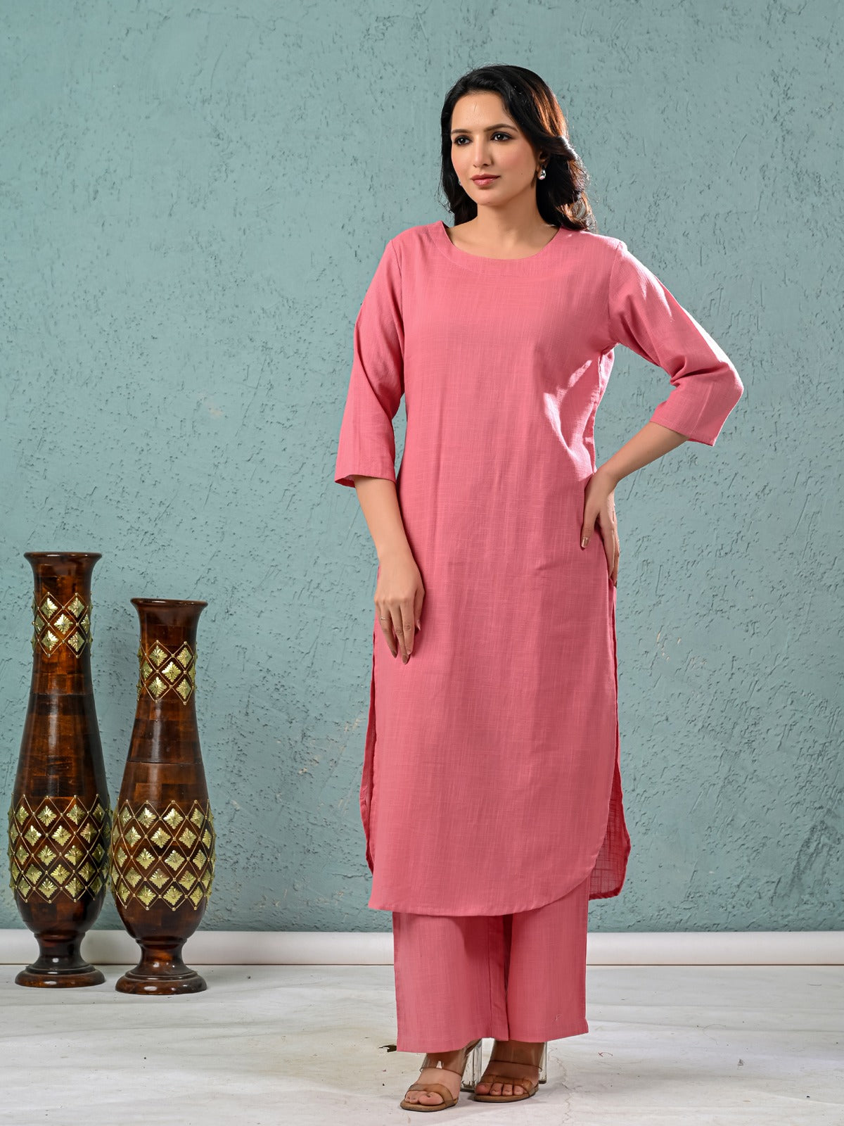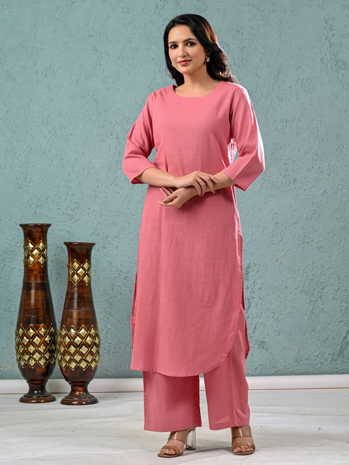 Discover timeless elegance with Quaclo's Women’s Solid Kurta Palazzo Set, crafted in soft, breathable cotton for all-day comfort. The top wear features a knee-length design with a classic round neck and easy pull-on closure, offering a relaxed yet stylish fit perfect for everyday wear. The full-length palazzo pants come with a fully elastic waistband, ensuring maximum flexibility and comfort. Ideal for casual outings or relaxed home days, this solid kurta palazzo set blends simplicity with subtle grace. Available in versatile colors and designed for effortless wear, it’s a must-have for every modern woman’s wardrobe.
