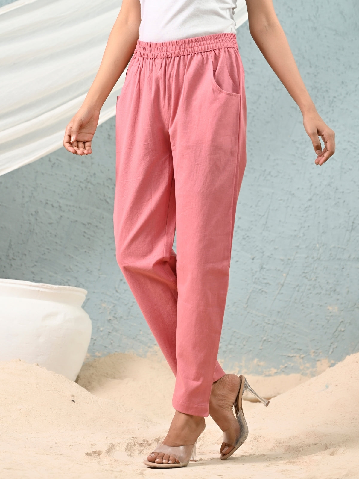 QuaClo Women's Regular Fit Cotton Trousers offer the ideal fusion of comfort and style. These trousers are created with premium cotton fabric and feature an all-day comfy fit. They are perfect for both casual wear and dressing up for special occasions thanks to the full elastic waistband, which guarantees a snug and secure fit. Good Day!! Happy Shopping! Solid Elastic South Cotton Women Trouser Occasion - Casual , Travel , Work Wear Ideal For: Women Fit Type: Regular Fit Fabric: Pure Cotton Closure Type: Elastic Care Instructions: Machine Wash