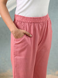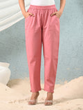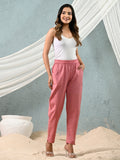 Women's Mauve Pink Regular Fit Elastic Cotton Trouser