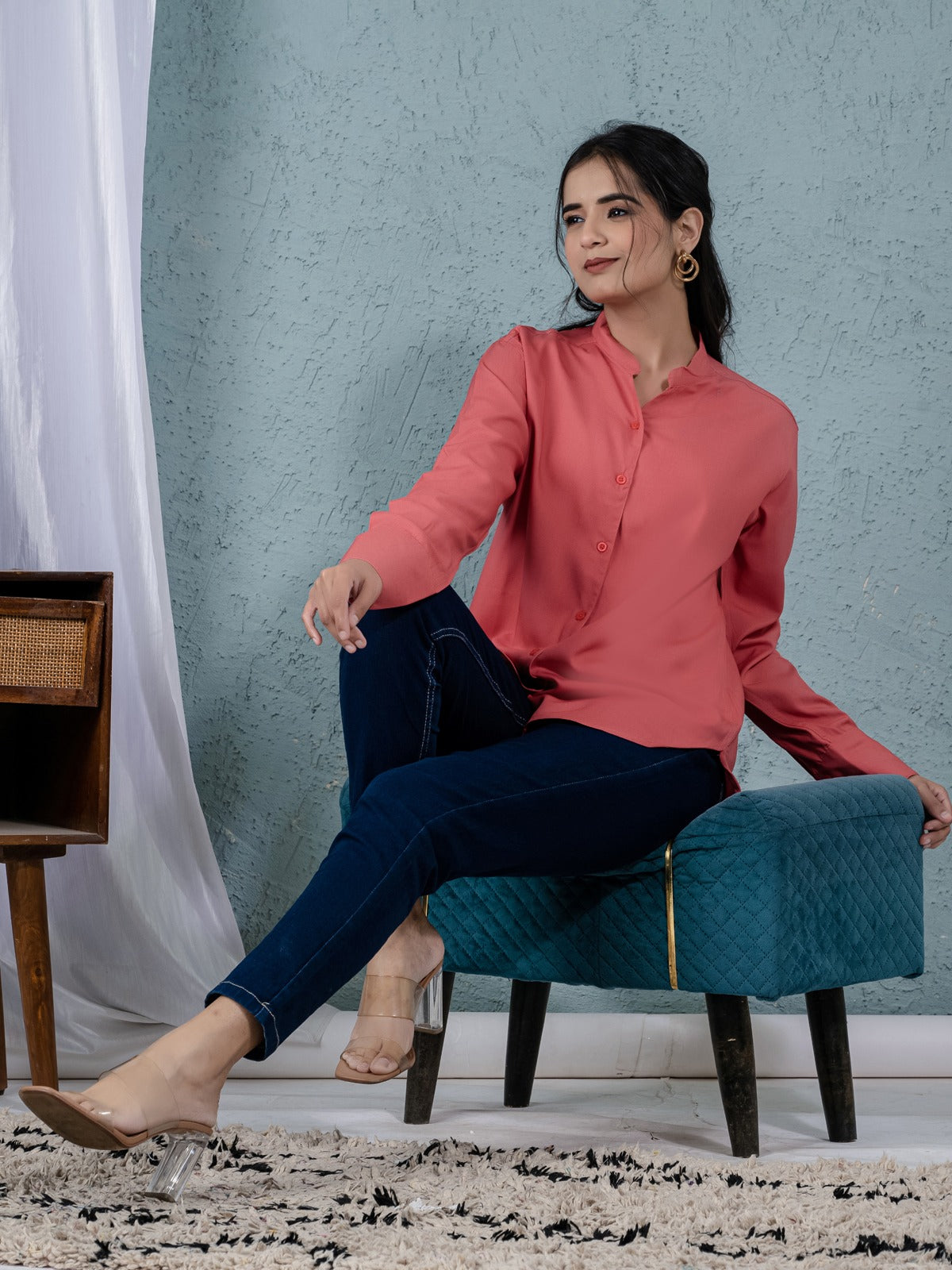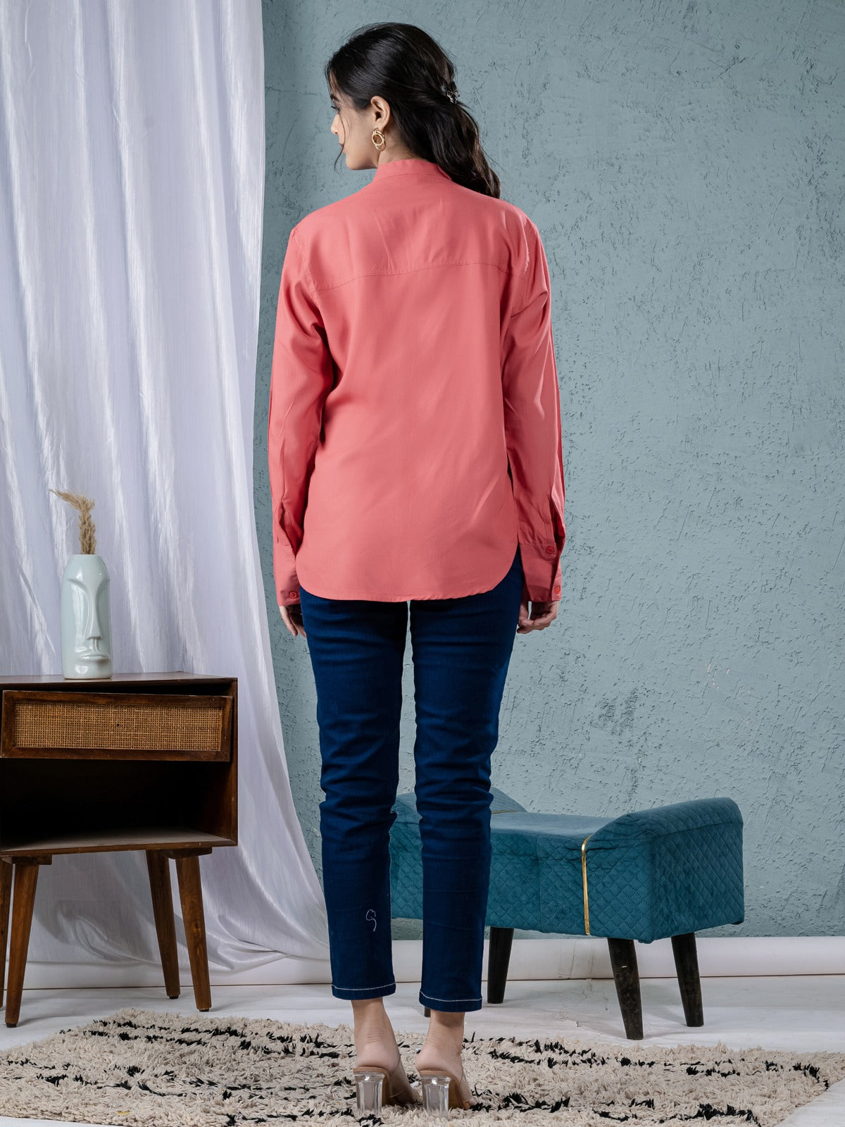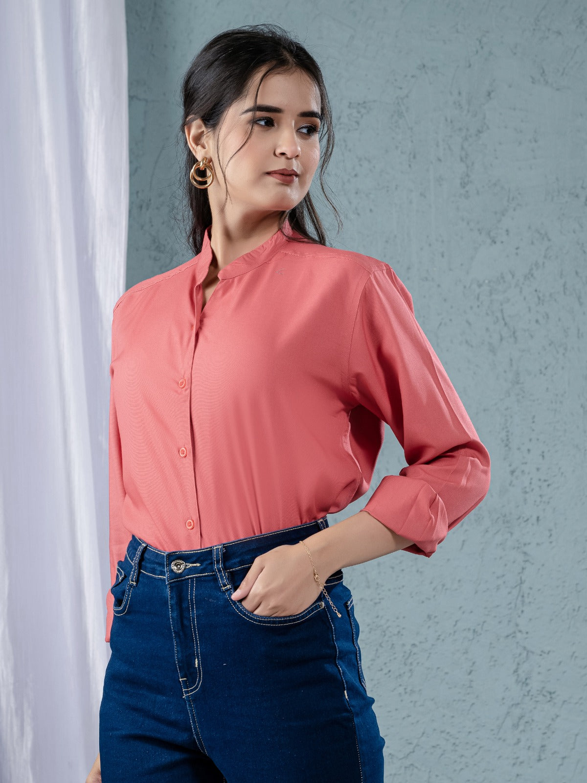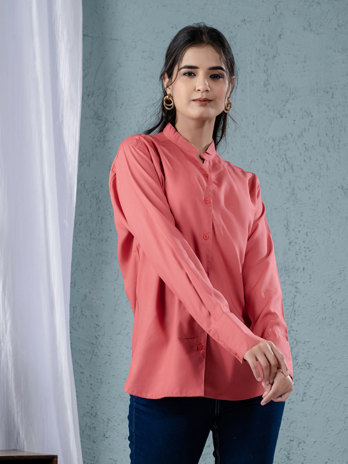 Are you trying to find a comfortable and fashionable women's shirt? For any occasion, our solid viscose rayon shirts are ideal! This shirt's full sleeves, V-shaped Mandarin collar neck, and hip-length cut give it a stylish and contemporary appearance. The soft viscose fabric offers breathability and comfort all day long, and the button closure guarantees a snug and well-fitting fit. This flexible item goes well with jeans, pants, or skirts and is perfect for evening events, office wear, and casual outings. This classic and sophisticated shirt, which comes in a variety of colors, will add flair to your outfit. Get a stylish and cozy fashion upgrade right now. Ideal for every season!