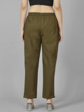 Pack Of 2 Womens Mehndi Green And Pink Deep Pocket Fully Elastic Cotton Trouser