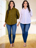 Pack Of 2 Womens Mehendi Green And White Cotton Loose Fit Shirt Combo