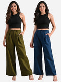 Pack Of 2 Mehendi Green And Teal Blue Women Cotton Wide Leg Pants