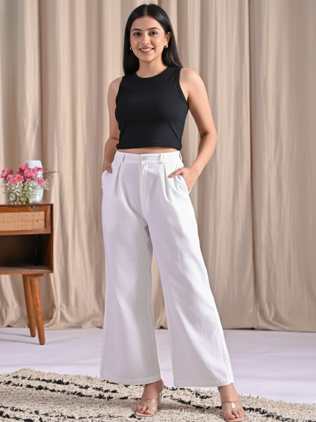 Effortless Style Meets Comfort: These wide-bottom cotton pants are your all-season essential. Featuring a flattering pleated design and a comfortable cotton fit, they offer a stylish and fashionable look perfect for any day.