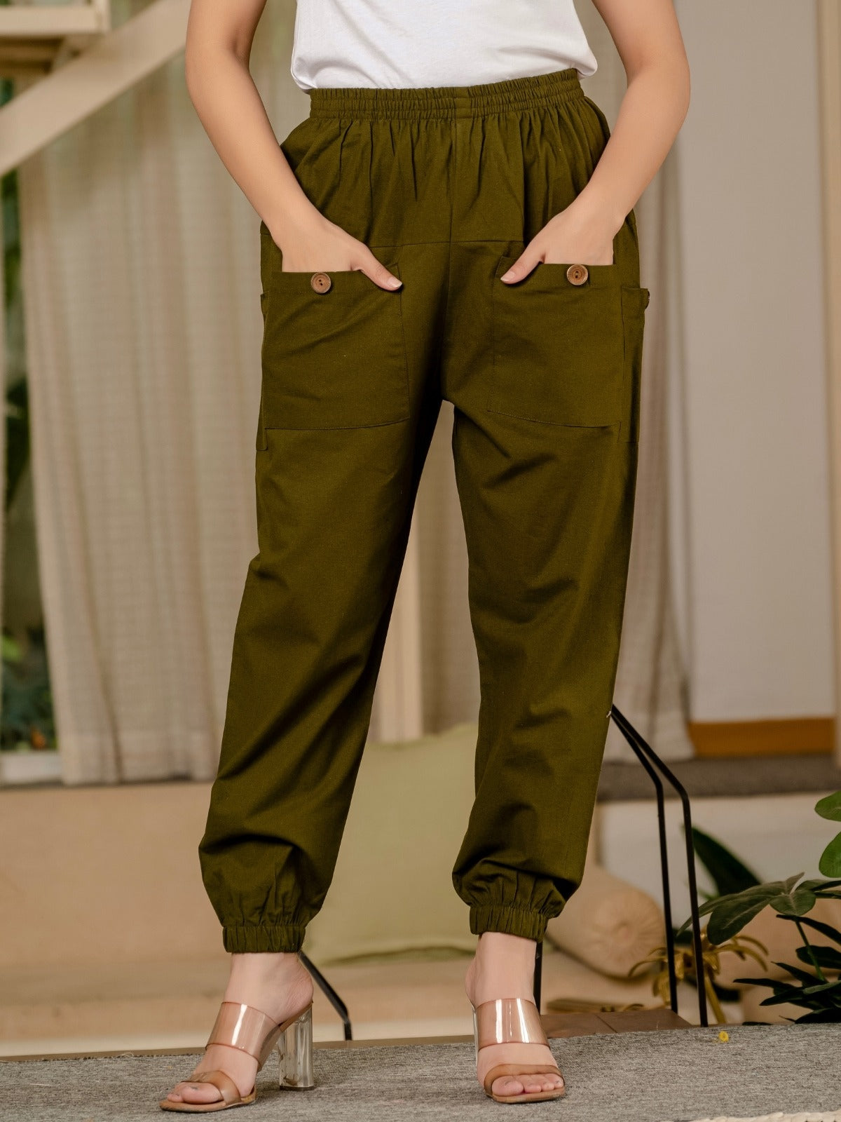 Quaclo's Combo Pack Of Womens Four Pocket Cotton Cargo Pants will amaze you with its unmatched comfort and style. The softness and breathability of these flexible cargo pants are precisely constructed from the finest pure cotton. While the fully elastic waistband guarantees a perfect fit and extra flexibility, the ankle elastic provides a trendy touch and allows you to show off your preferred shoes. Whether you're relaxing at home, heading out or going on an adventure, these cargo pants are your go-to choice. The Pure Cotton Four Pocket Cargo Pants for Women by Quaclo are the perfect combination of fashion and function. Order this essential item right away as feasible to enhance your entire look.