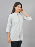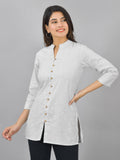 This Quaclo Women's Short Kurti is expertly woven from the finest handloom cotton and will be a good choice to be added in your ethnic collection. This elegant kurti has a convenient 30-inch length, making it ideal for all-day wear and for small get togethers/functions as well. The glorious woven design on the front, combined with gorgeous buttons and a fashionable front-slit style, makes it complete. This outstanding addition to your wardrobe provides the ideal balance of comfort, style, and tradition at the same time.