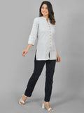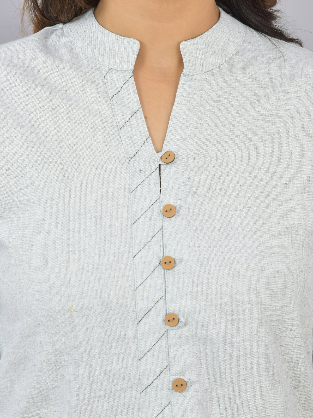 Womens Melange Grey Woven Design Handloom Cotton Frontslit Short Kurti