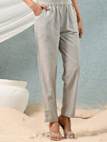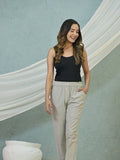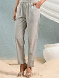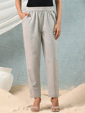 Women's Melage Grey Regular Fit Elastic Cotton Trouser