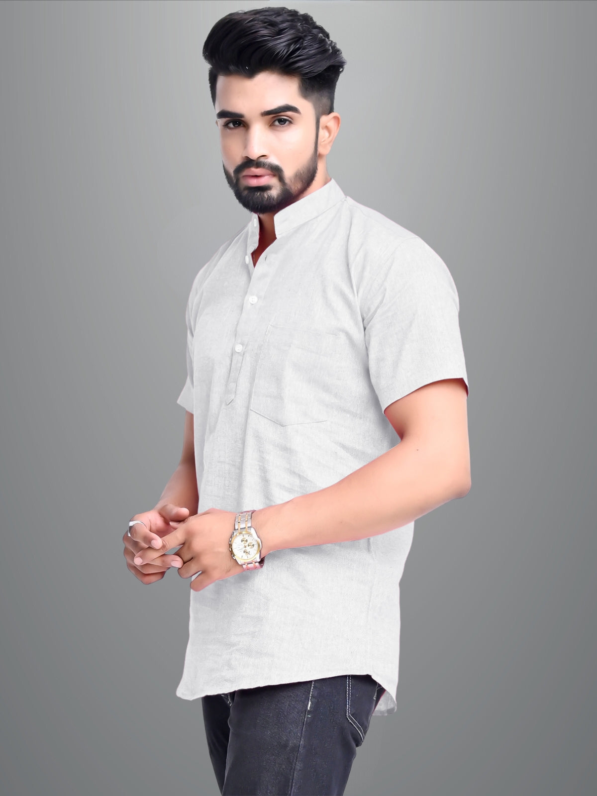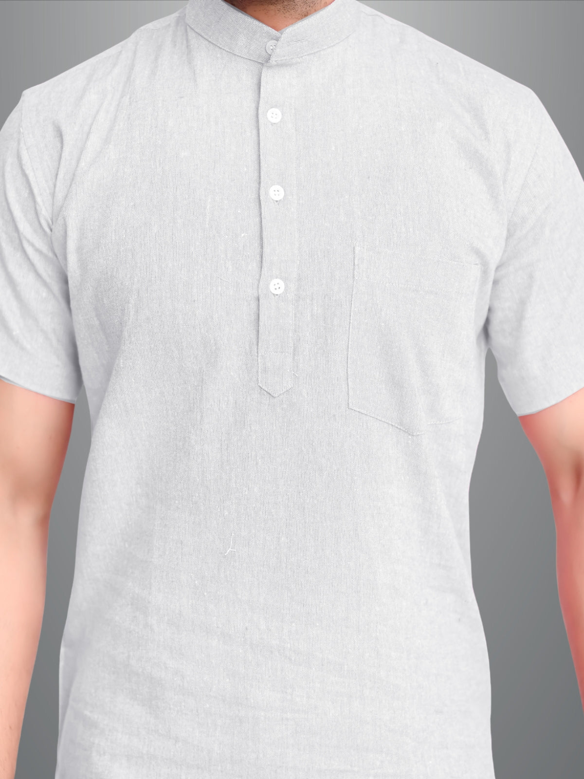 Mens Solid Melange Grey Cotton Blend Short Kurta