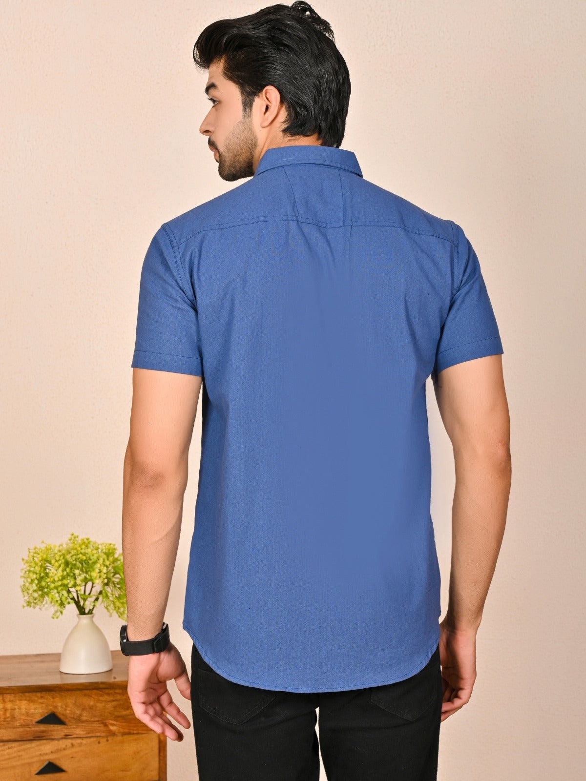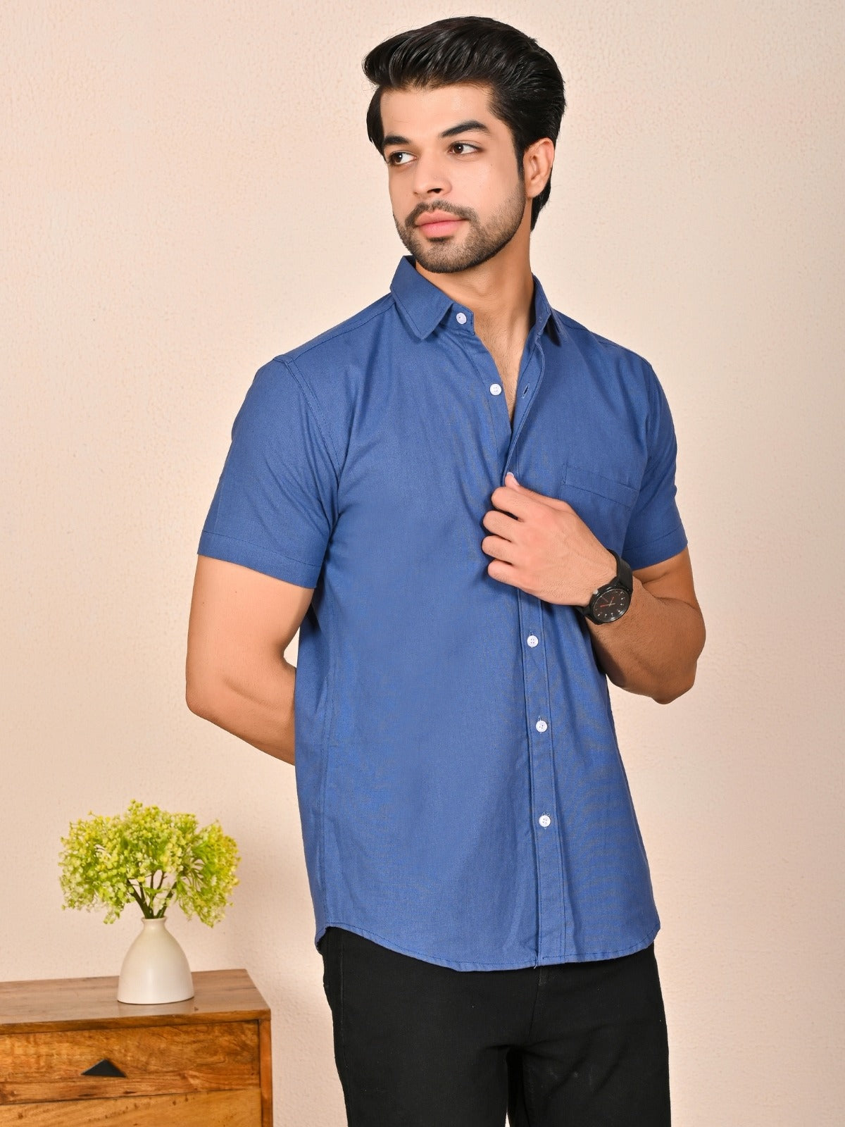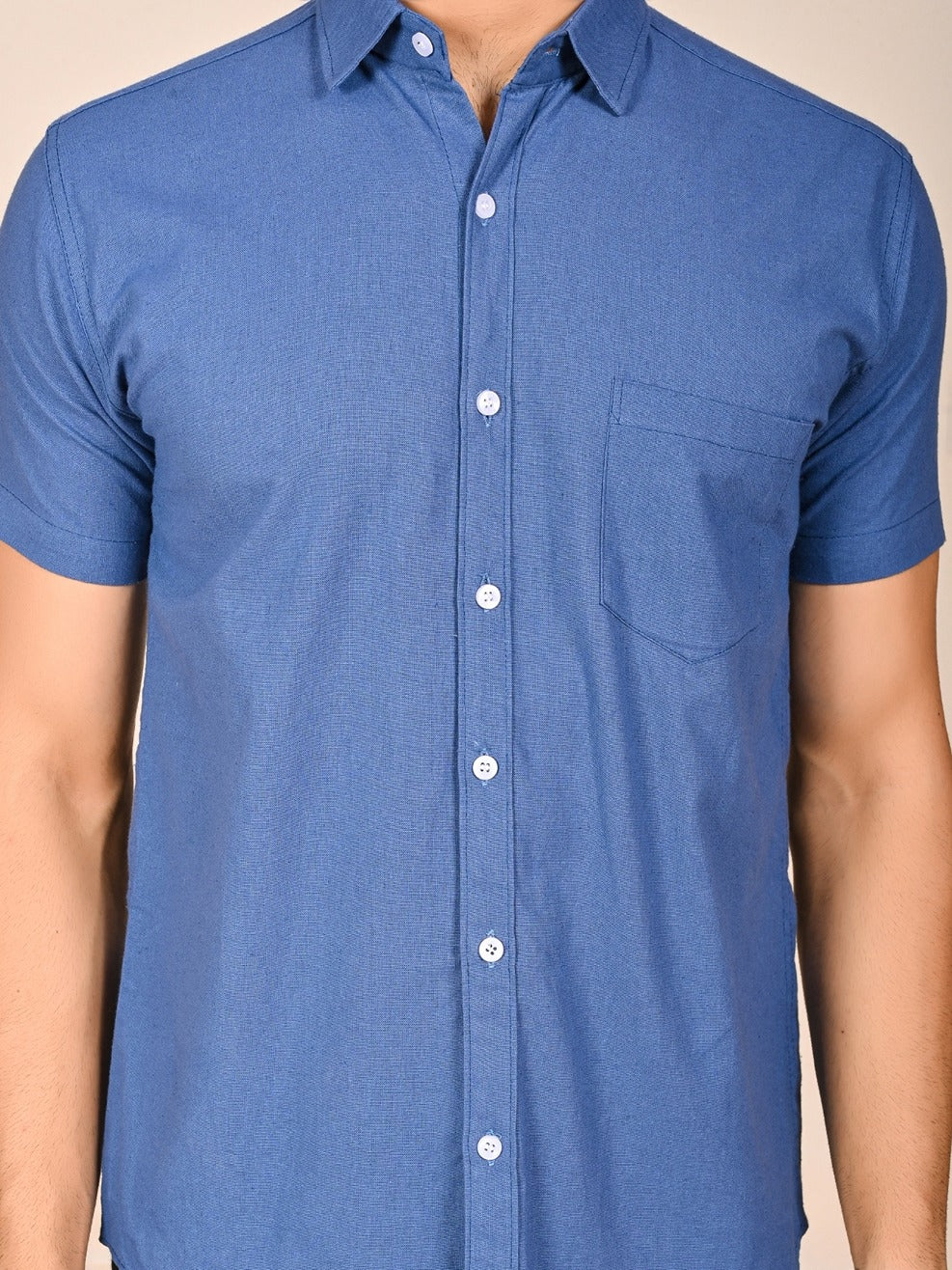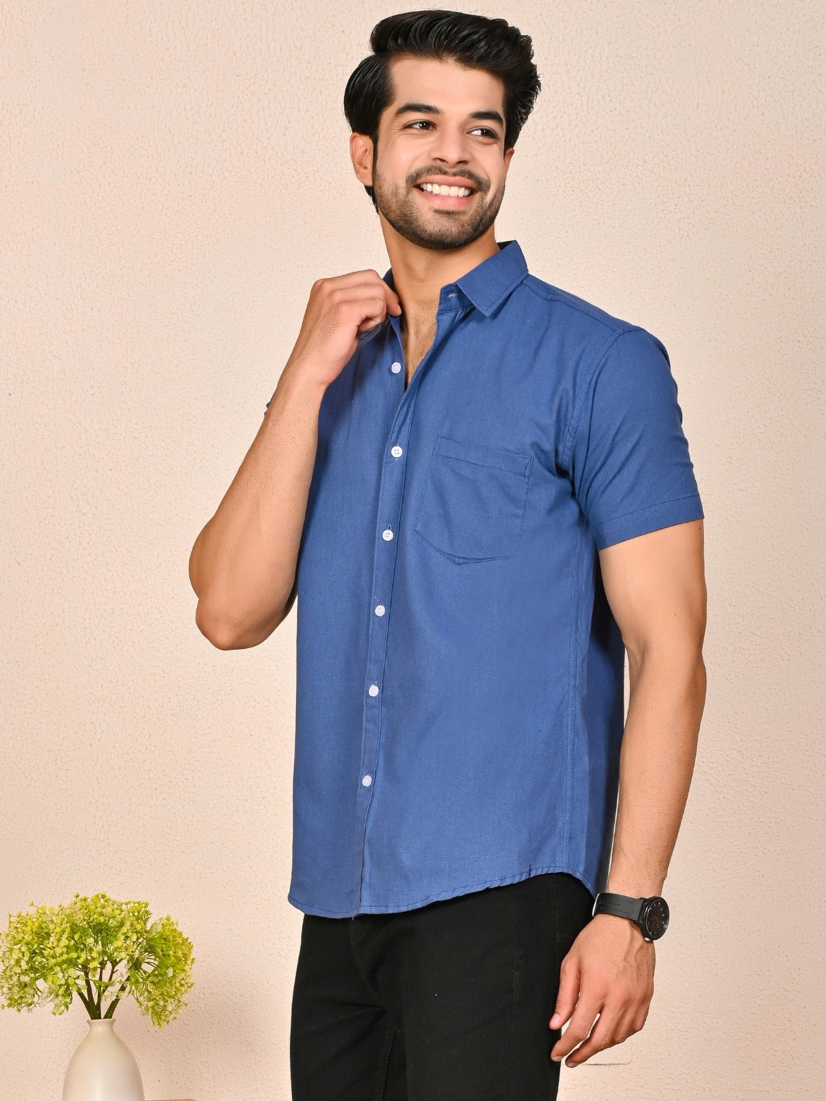 Mens solid Teal Blue Half Sleeve Cotton shirt