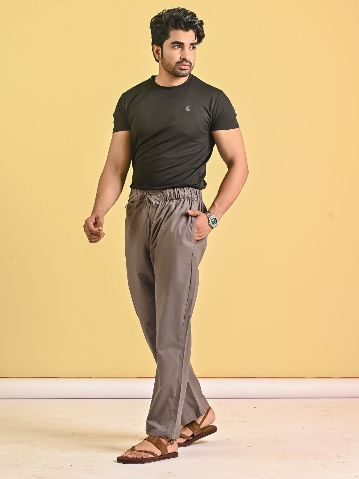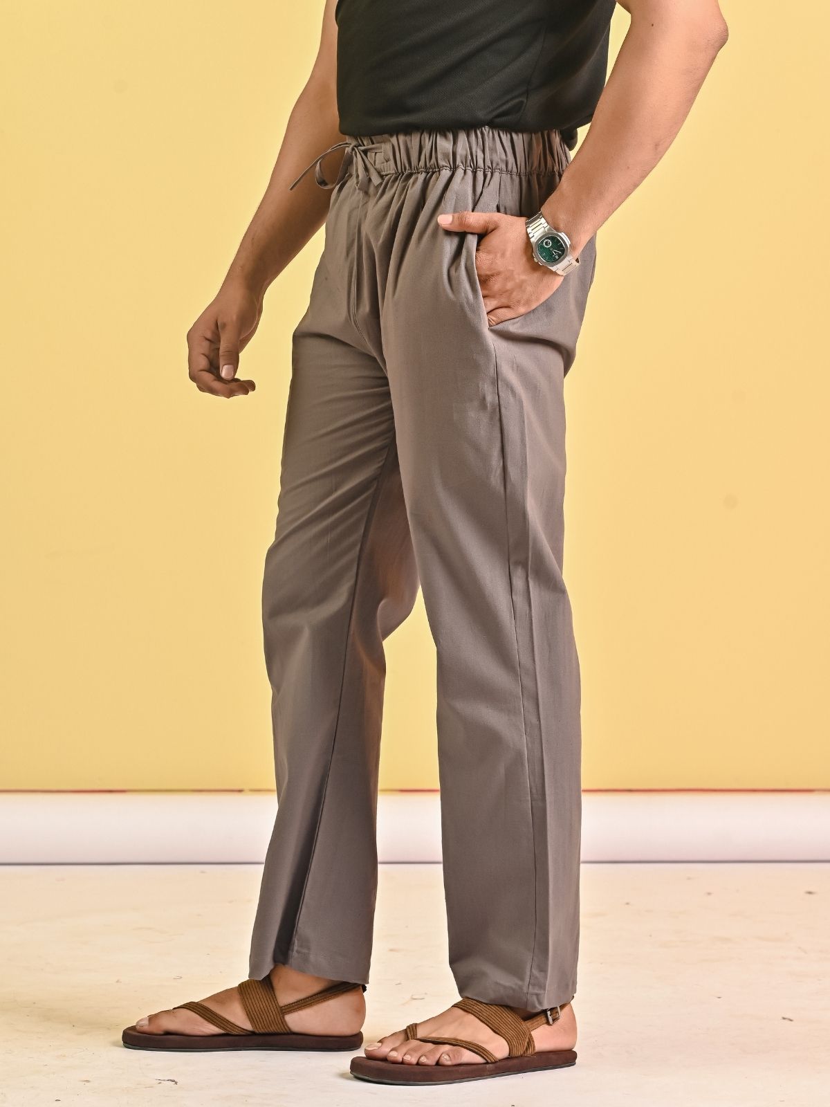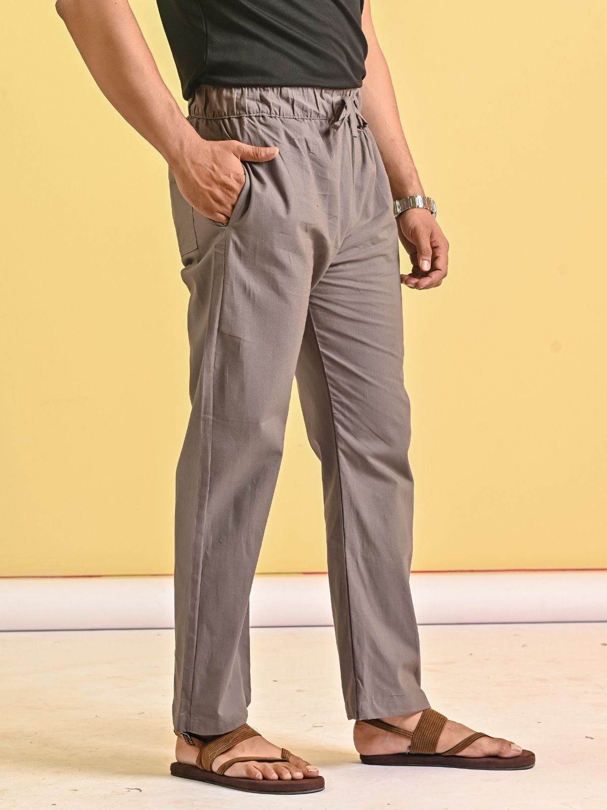 Designed for all-day comfort and relaxation, our men's loose-fitting pajama pants are a great way to upgrade your sleepwear. These full-length pajama pants, which are made of a soft and breathable cotton blend, are ideal for sleeping or relaxing. With an adjustable drawstring and a fully elasticated waistband, they provide a snug yet adaptable fit. With two side pockets and a patch pocket on the back hip, this practical yet comfortable bag is perfect for holding small necessities close at hand. These cotton-blend pajama pants offer the ideal balance of ease, style, and durability, whether you're sleeping through the night or having a relaxing weekend morning. A wardrobe essential for all men.