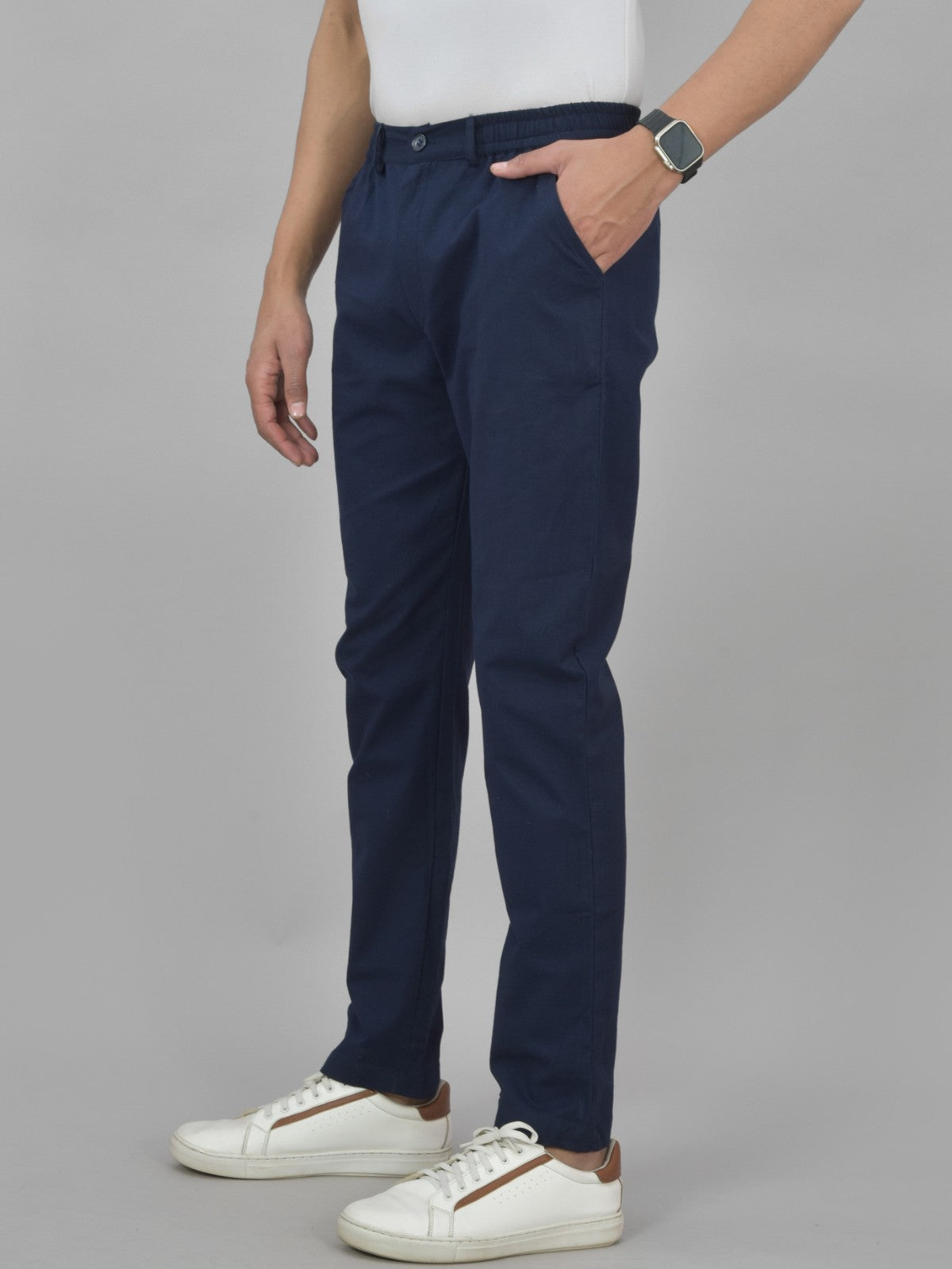 Experience a new level of convenience and classic style when you wear our Mens Regular Fit Cotton Trousers. These trousers, which are made of high-quality cotton fabric, provide the ideal balance of breathability and durability. It is 41 inches in length, they offer a flexible fit that is perfect for daily wear or party wear. With their traditional button-fastened chain and two practical slant pockets, these trousers effortlessly blend style and utility. Our flawlessly made mens trousers will elevate your wardrobe necessities and satisfy all of your style demands.