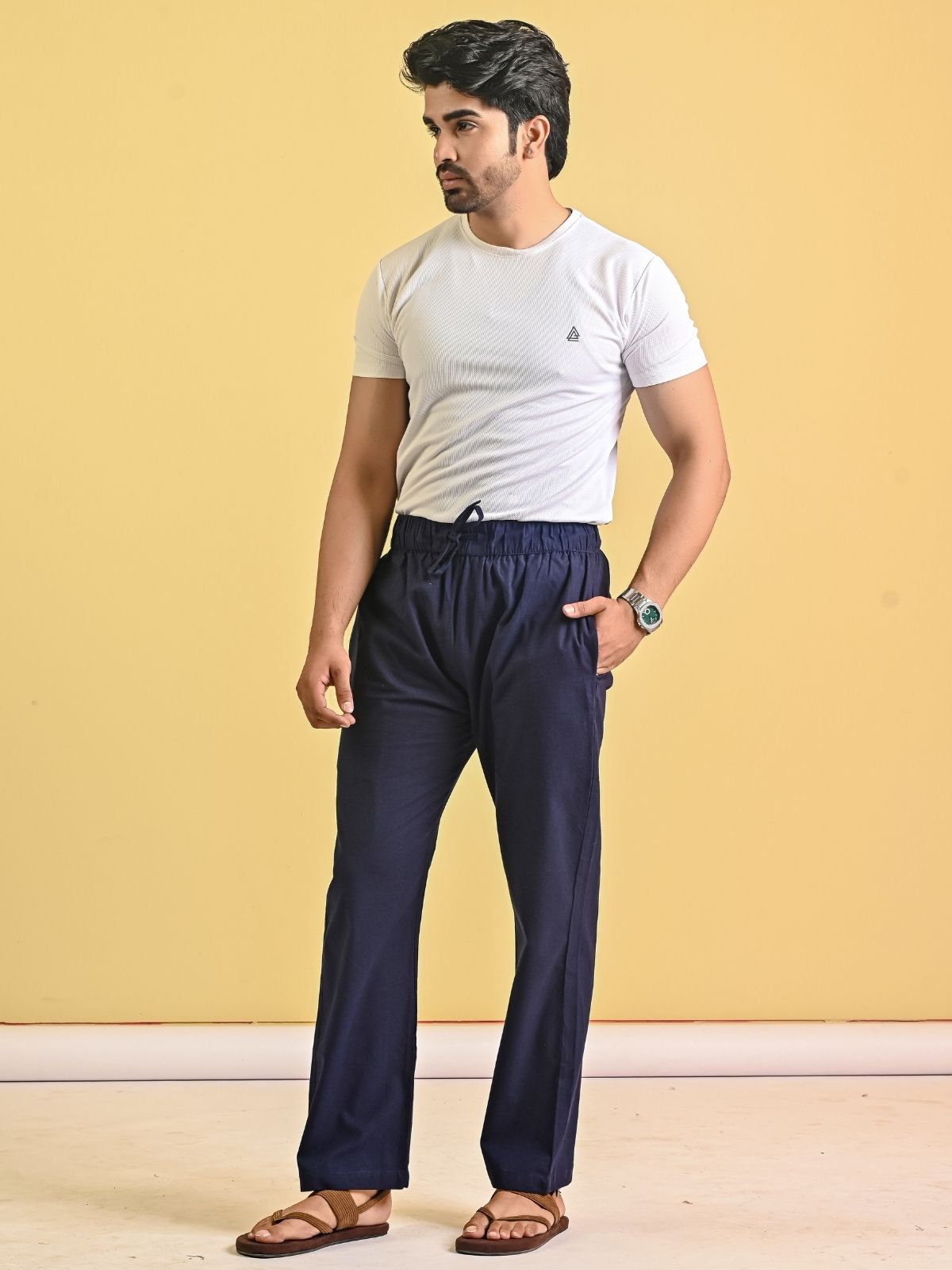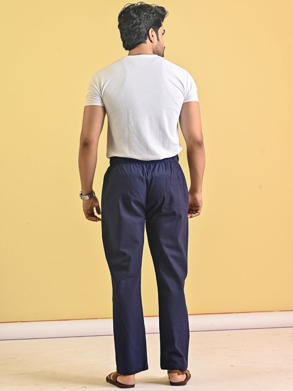 Designed for all-day comfort and relaxation, our men's loose-fitting pajama pants are a great way to upgrade your sleepwear. These full-length pajama pants, which are made of a soft and breathable cotton blend, are ideal for sleeping or relaxing. With an adjustable drawstring and a fully elasticated waistband, they provide a snug yet adaptable fit. With two side pockets and a patch pocket on the back hip, this practical yet comfortable bag is perfect for holding small necessities close at hand. These cotton-blend pajama pants offer the ideal balance of ease, style, and durability, whether you're sleeping through the night or having a relaxing weekend morning. A wardrobe essential for all men.