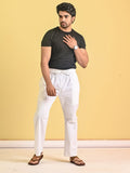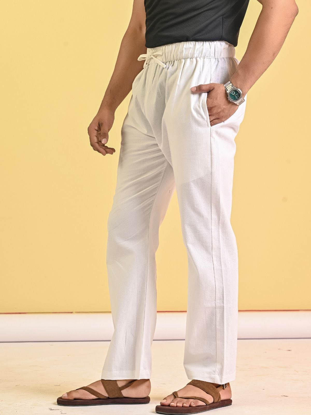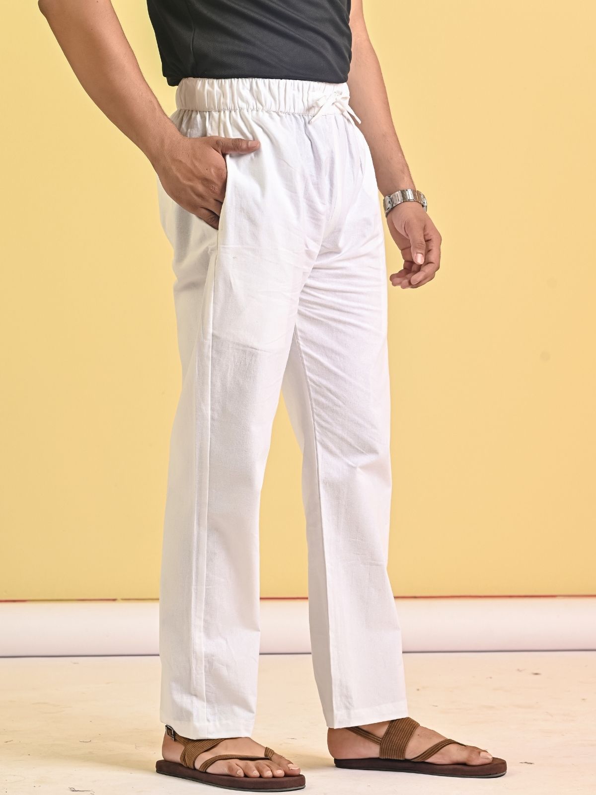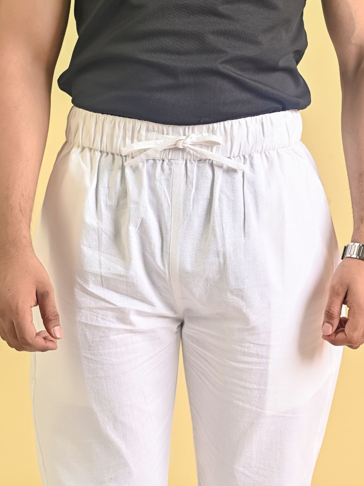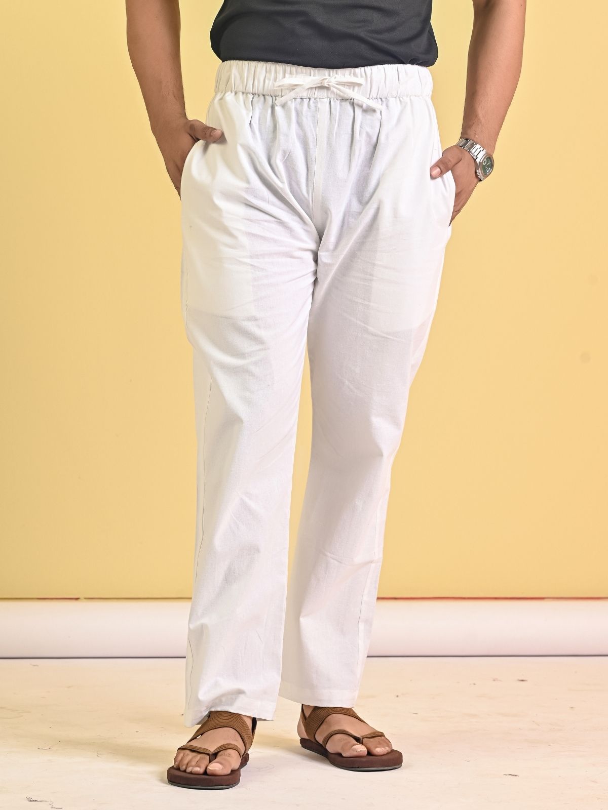Designed for all-day comfort and relaxation, our men's loose-fitting pajama pants are a great way to upgrade your sleepwear. These full-length pajama pants, which are made of a soft and breathable cotton blend, are ideal for sleeping or relaxing. With an adjustable drawstring and a fully elasticated waistband, they provide a snug yet adaptable fit. With two side pockets and a patch pocket on the back hip, this practical yet comfortable bag is perfect for holding small necessities close at hand. These cotton-blend pajama pants offer the ideal balance of ease, style, and durability, whether you're sleeping through the night or having a relaxing weekend morning. A wardrobe essential for all men.