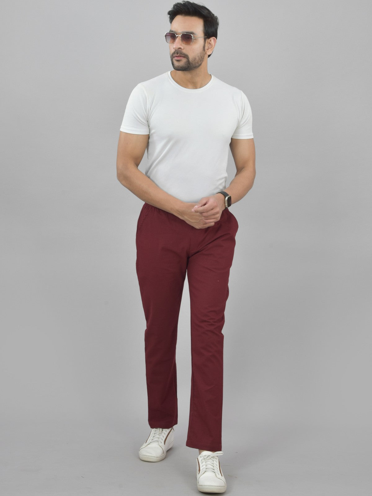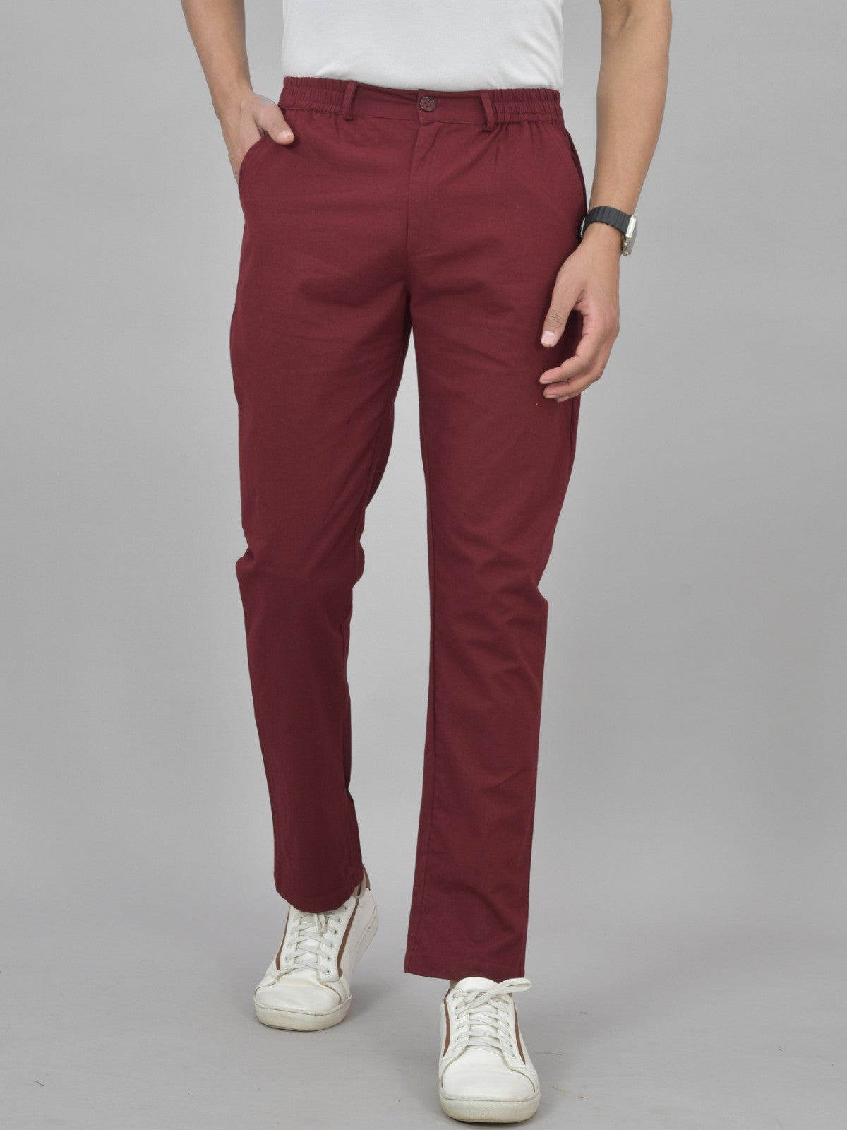 Wine Airy linen Summer Cool Cotton Comfort Pants For Men