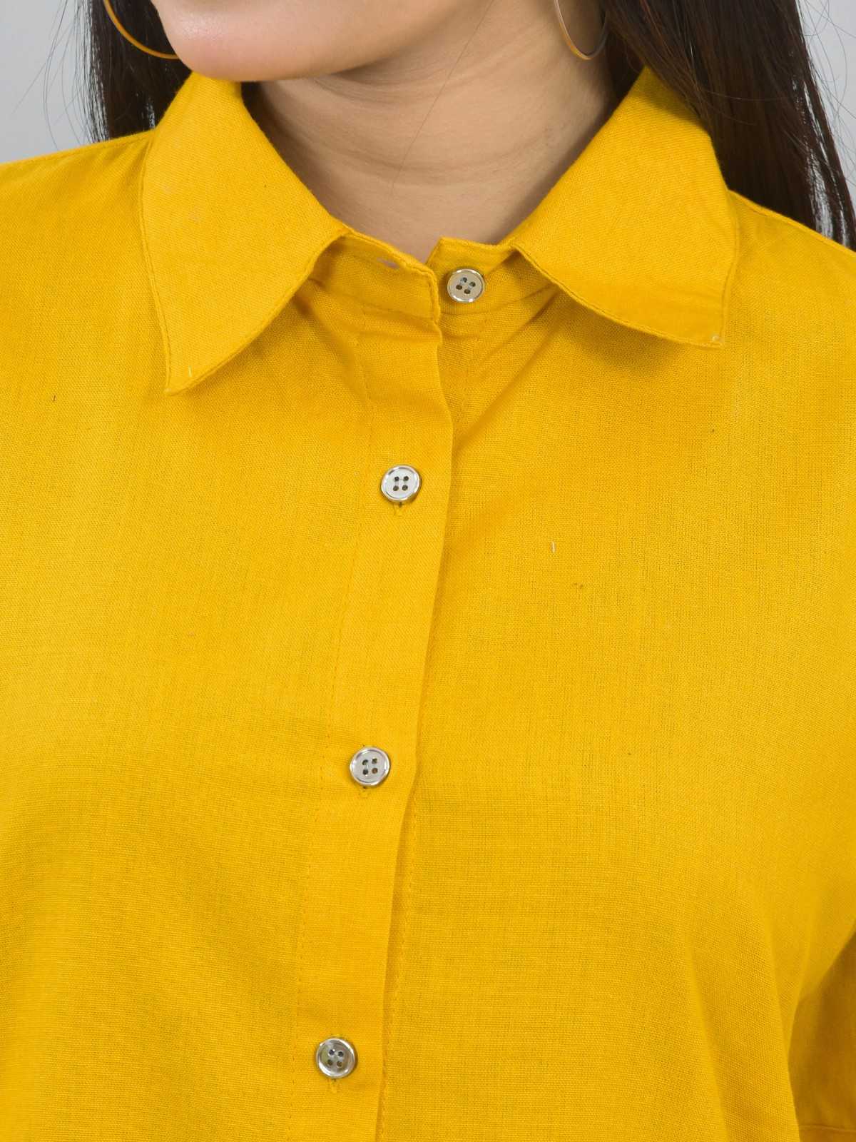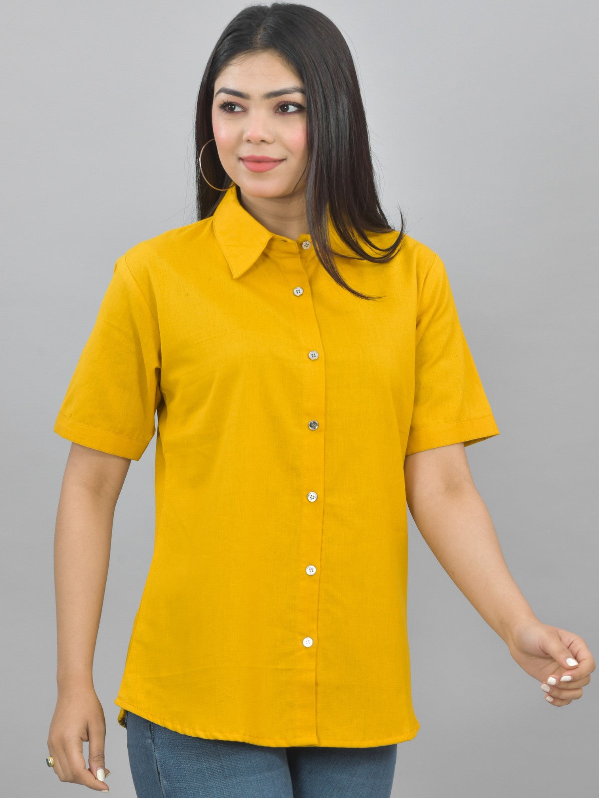 Women Solid Mustard Half Sleeve Spread Collar Cotton Shirt