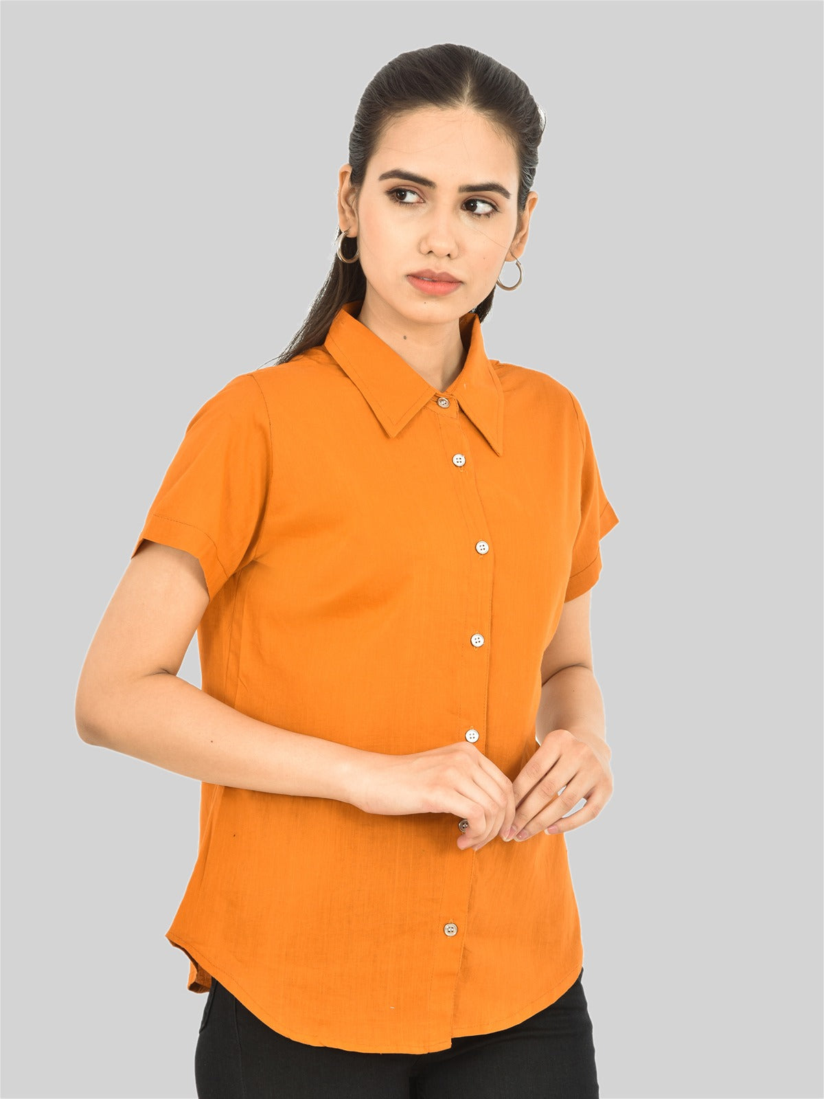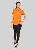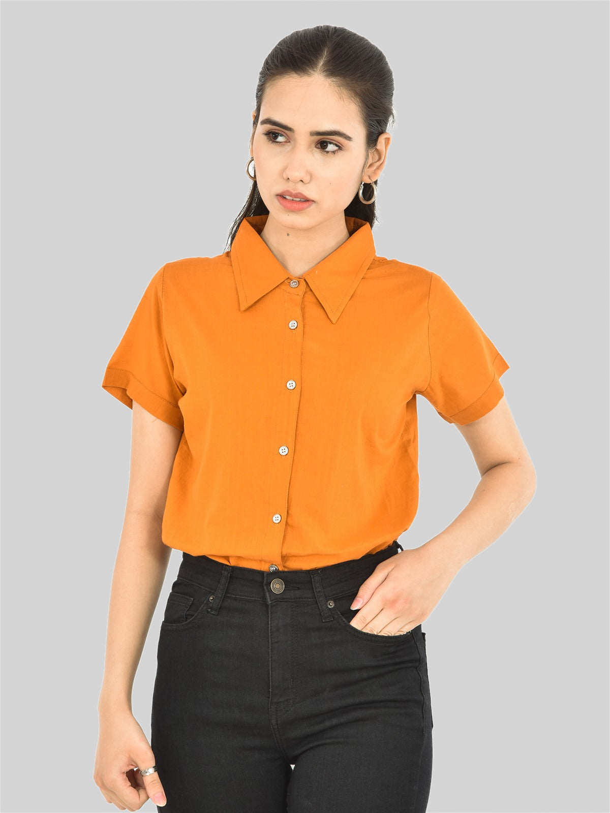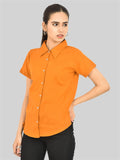 Womens Regular Fit Mustard Half Sleeve Cotton Shirt