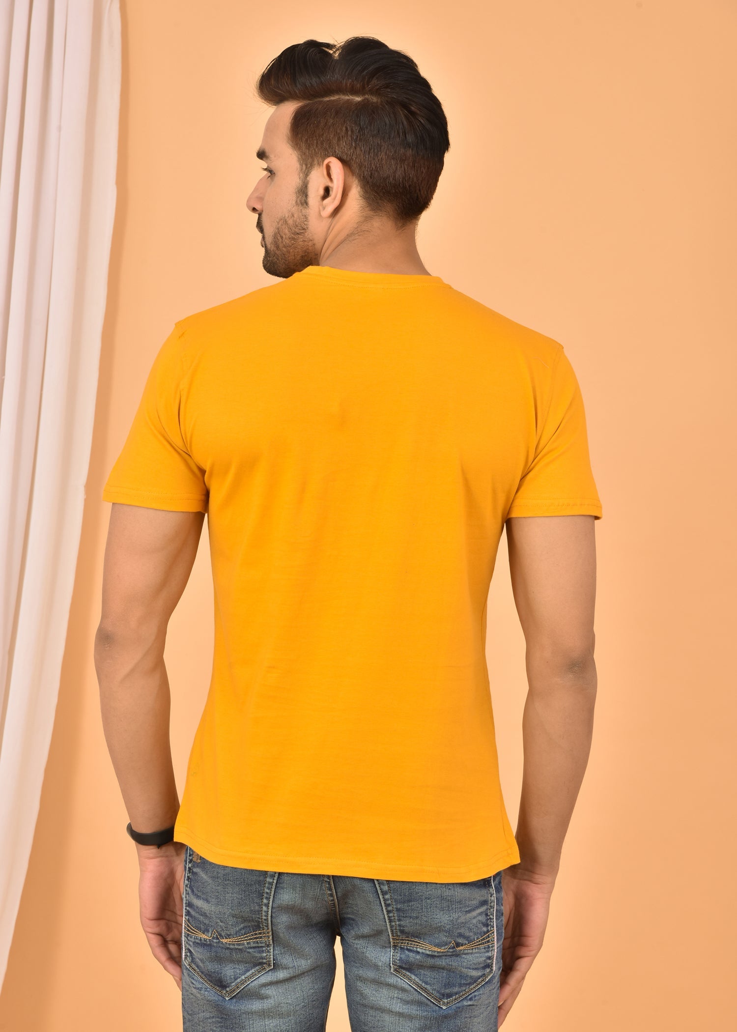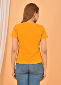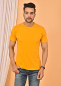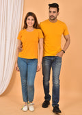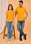 Couple Mustard Round Neck Cotton Blend Plain T-shirt Set