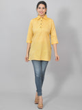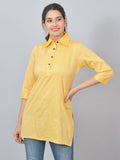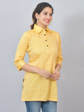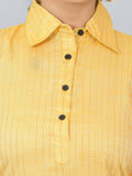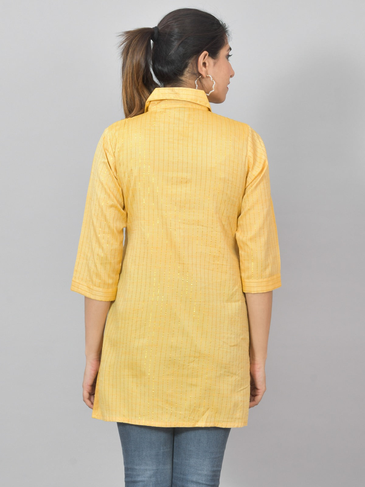 Womens Mustard Lurex Striped Spread Collar Short Kurti