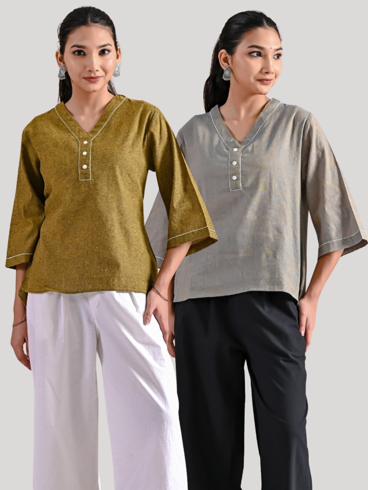 Pack Of 2 Mustard And Ocian Blue Handloom Cotton Anchor Thread Designer Tops