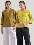 Pack Of 2 Mustard And Parrot Green Handloom Cotton Anchor Thread Designer Tops