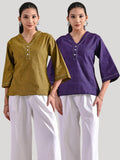 Pack Of 2 Mustard And Purple Handloom Cotton Anchor Thread Designer Tops