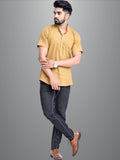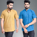 Mens Regular Fit Mustard and Teal Blue Half Sleeve Cotton Short Kurta Combo