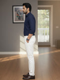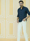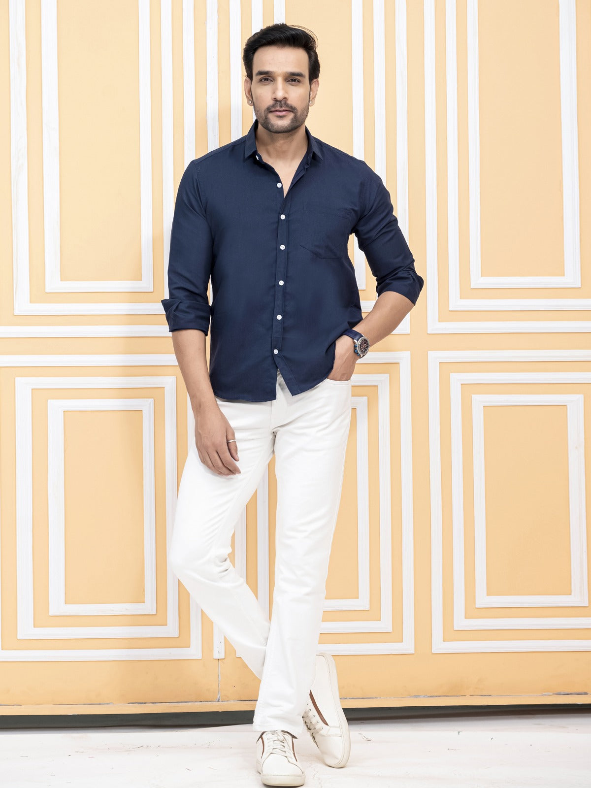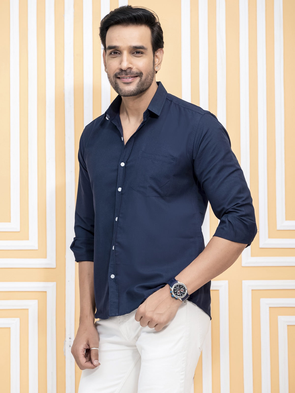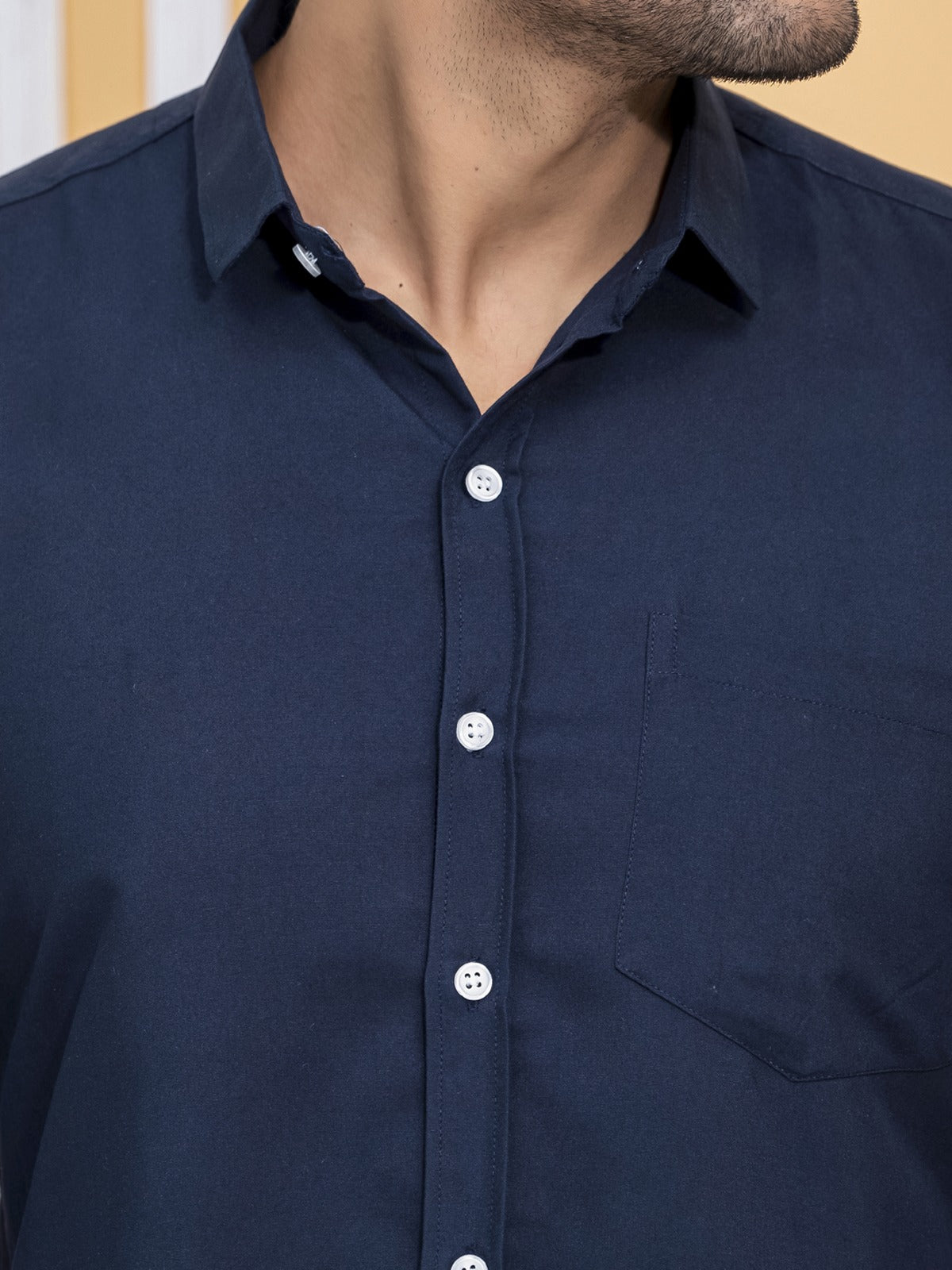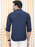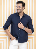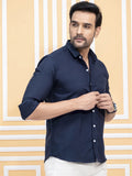 Mens Solid Navy Blue Full Sleeve Cotton Blend Shirt