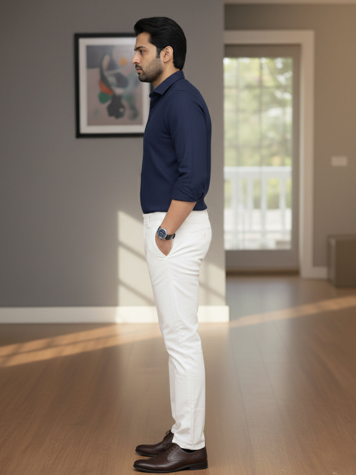 This fashionable men's cotton blend shirt with a solid color design will add a forever and elegant touch to your wardrobe. With its all-day comfort and durability, this full-sleeve shirt is ideal for both formal and informal settings. While the button closure guarantees a tidy fit, the spread collar adds an elegant touch. The soft feel and breathability of this shirt, which is made from a premium cotton blend, make it perfect for year-round wear. Wear it with jeans for a carefree weekend outing or trousers for a professional office appearance. This multipurpose shirt, which comes in a range of sizes, is a wardrobe staple for the contemporary man. Reimagine your style by getting yours now!