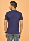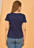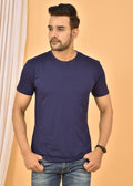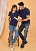 Couple Navy Blue Round Neck Cotton Blend Plain T-shirt Set
