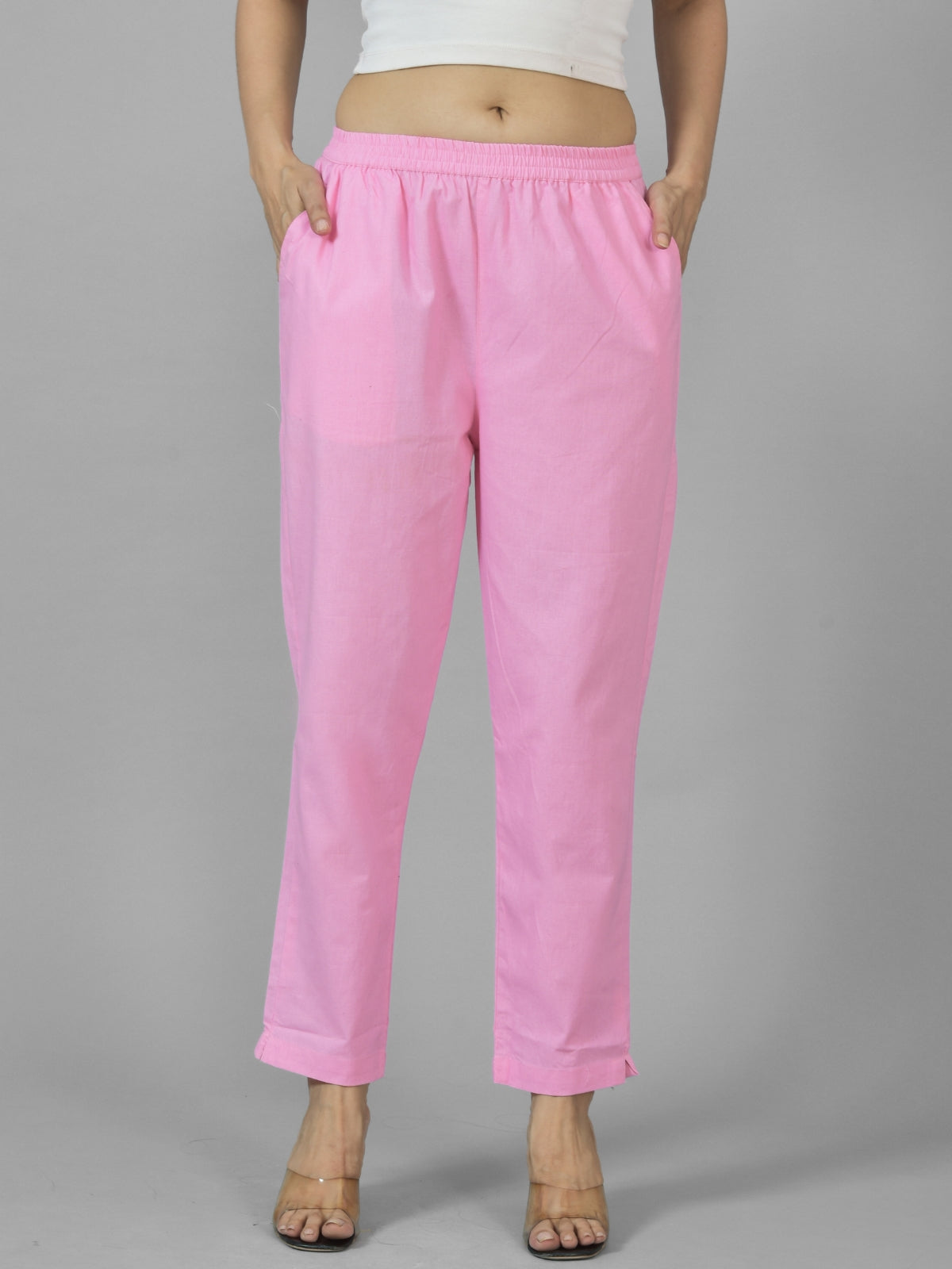 This Pack Of 2 Quaclo Womens Deep Pocket Cotton Trousers Combo is a functional and fashionable addition to your daily outfit. These trousers, which are made from premium cotton flex, provide unmatched comfort and breathability for all-day wear. The fully elastic waistband closure ensures a perfect fit and easy on-and-off, making these trousers a go-to choice for comfort and convenience. These trousers are ideal for business, casual outings, or special occasions thanks to their classic style and flawless fit. The two spacious pockets improve functionality and convenience for your daily activities, and the solid design makes these trousers a long-lasting classic in your wardrobe. With the Klothing Women Two Pocket Pure Cotton Trouser, where comfort and style easily converge, up your fashion game. Two Trousers Are Included In This Pack