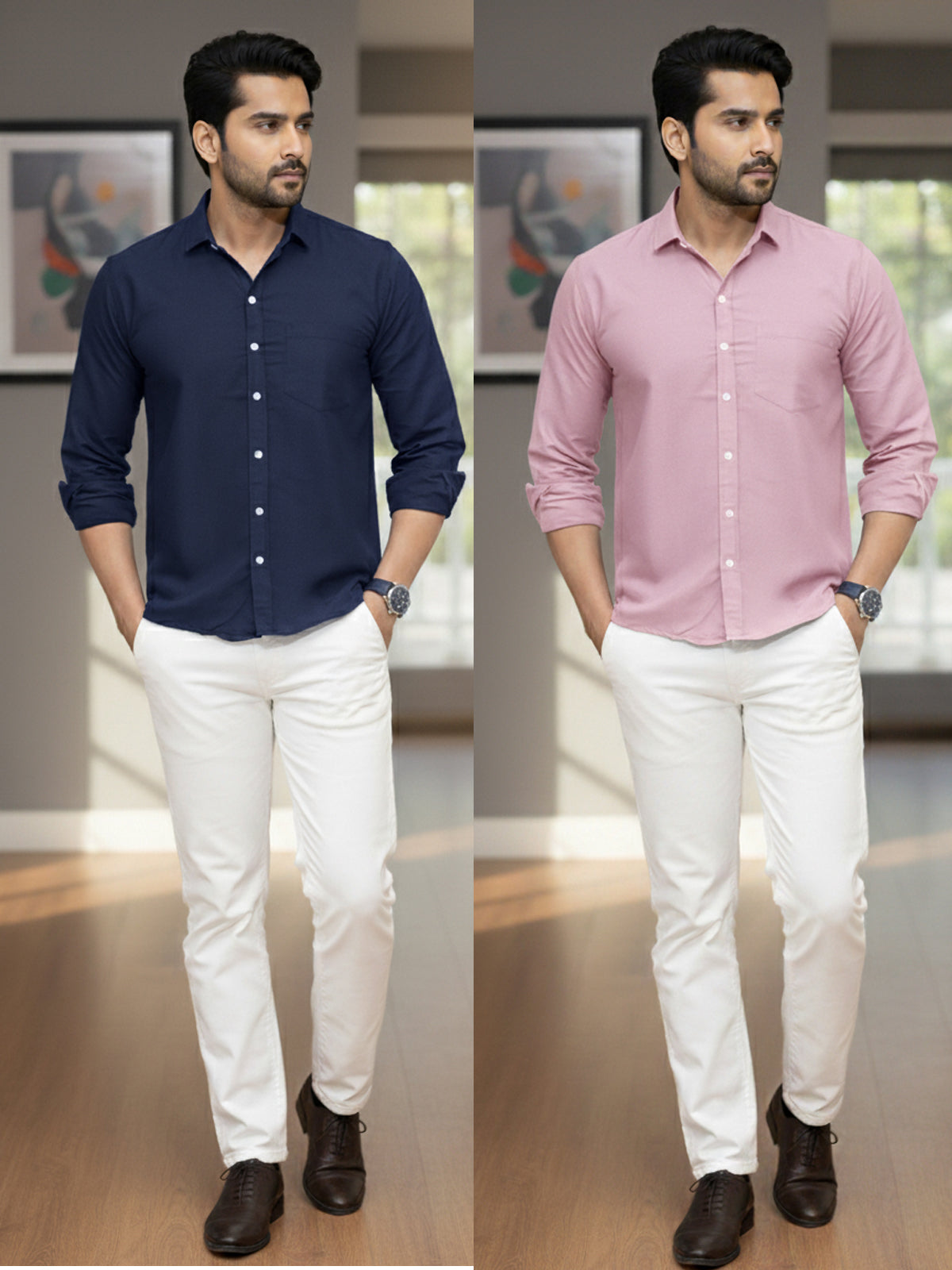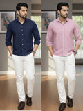 These stylish men's Airy linen shirts Combo with a solid color design will give your outfit a timeless, sophisticated touch. This full-sleeve shirt is perfect for both formal and casual settings because of its durability and all-day comfort. The spread collar adds a sophisticated touch, and the button closure ensures a neat fit. Made from a high-quality linen fabric, this shirt's soft feel and breathability make it ideal for year-round wear. Wear it with pants for a polished office look or jeans for a laid-back weekend outing. This multipurpose shirt is a wardrobe essential for the modern man and is available in a variety of sizes.