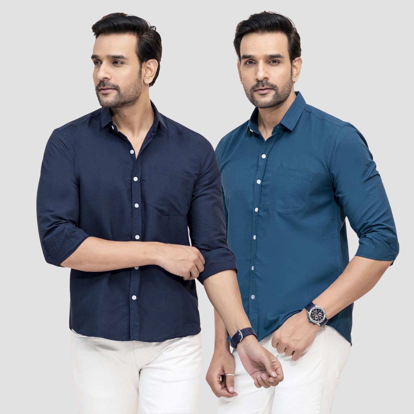 These stylish men's Airy linen shirts Combo with a solid color design will give your outfit a timeless, sophisticated touch. This full-sleeve shirt is perfect for both formal and casual settings because of its durability and all-day comfort. The spread collar adds a sophisticated touch, and the button closure ensures a neat fit. Made from a high-quality linen fabric, this shirt's soft feel and breathability make it ideal for year-round wear. Wear it with pants for a polished office look or jeans for a laid-back weekend outing. This multipurpose shirt is a wardrobe essential for the modern man and is available in a variety of sizes.