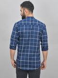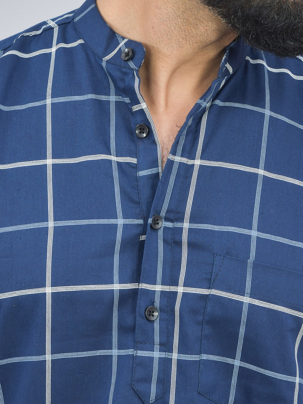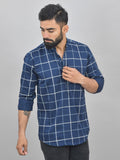 Quaclo Mens Navy Blue Wide Check Cotton Short Kurta