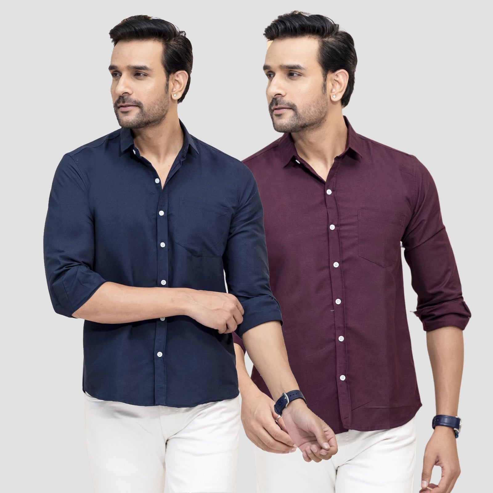 These stylish men's Airy linen shirts Combo with a solid color design will give your outfit a timeless, sophisticated touch. This full-sleeve shirt is perfect for both formal and casual settings because of its durability and all-day comfort. The spread collar adds a sophisticated touch, and the button closure ensures a neat fit. Made from a high-quality linen fabric, this shirt's soft feel and breathability make it ideal for year-round wear. Wear it with pants for a polished office look or jeans for a laid-back weekend outing. This multipurpose shirt is a wardrobe essential for the modern man and is available in a variety of sizes.