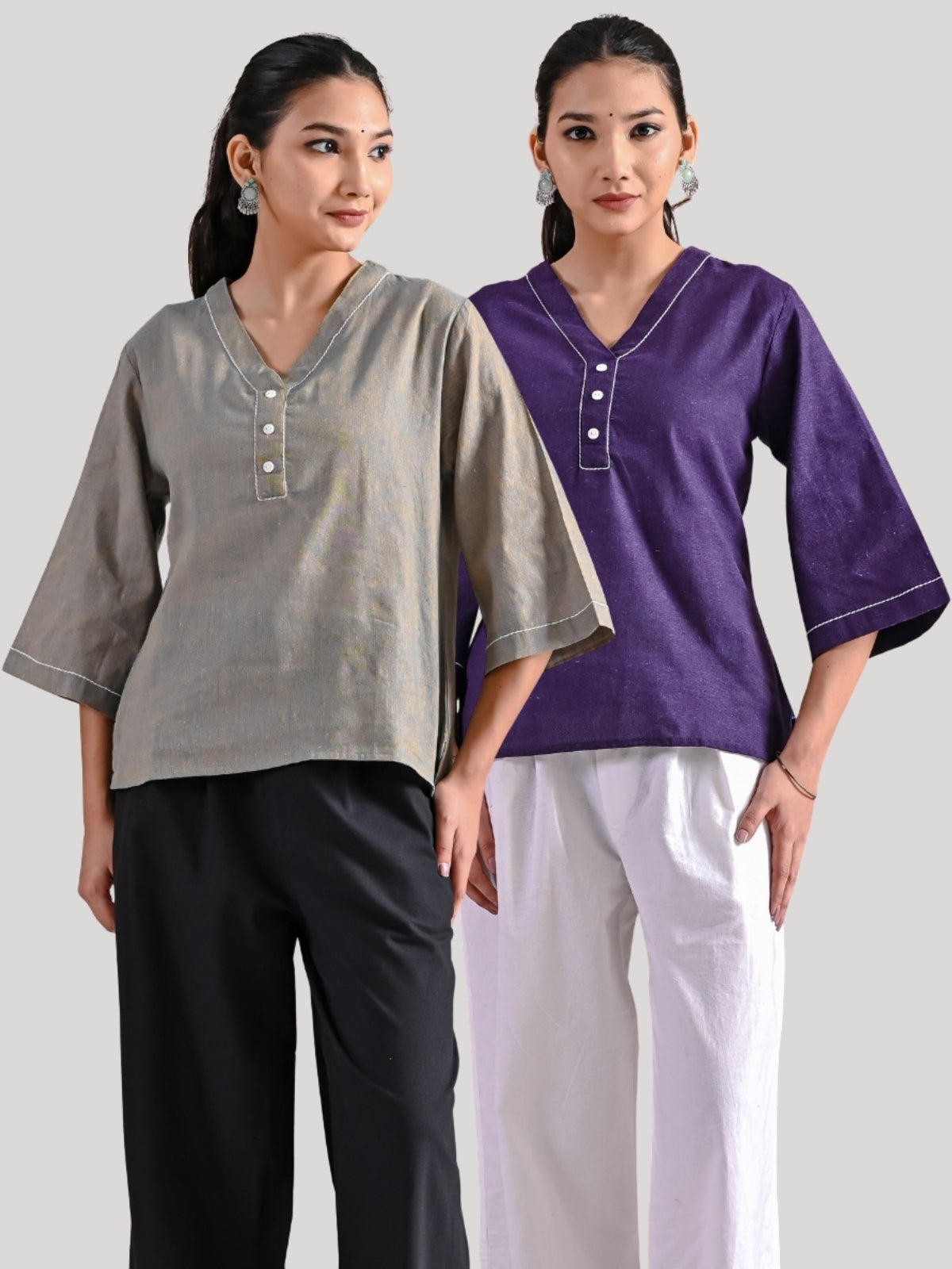 Pack Of 2 Ocian Blue And Purple Handloom Cotton Anchor Thread Designer Tops