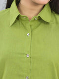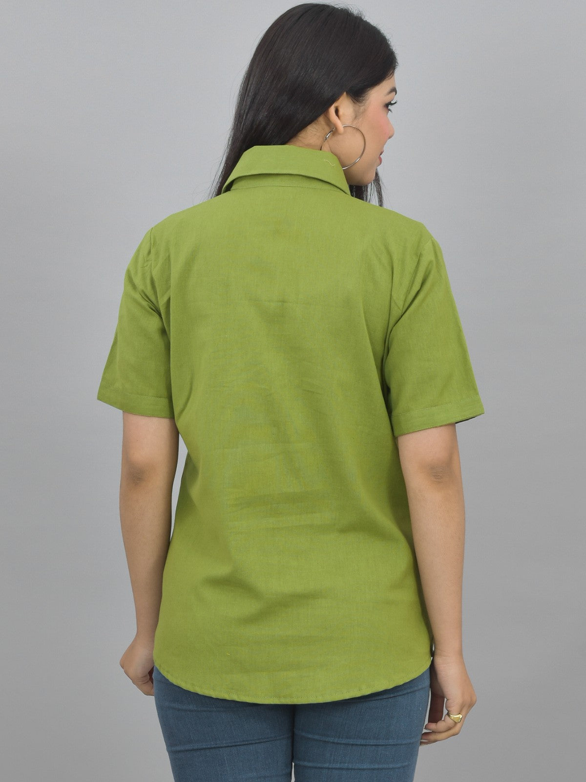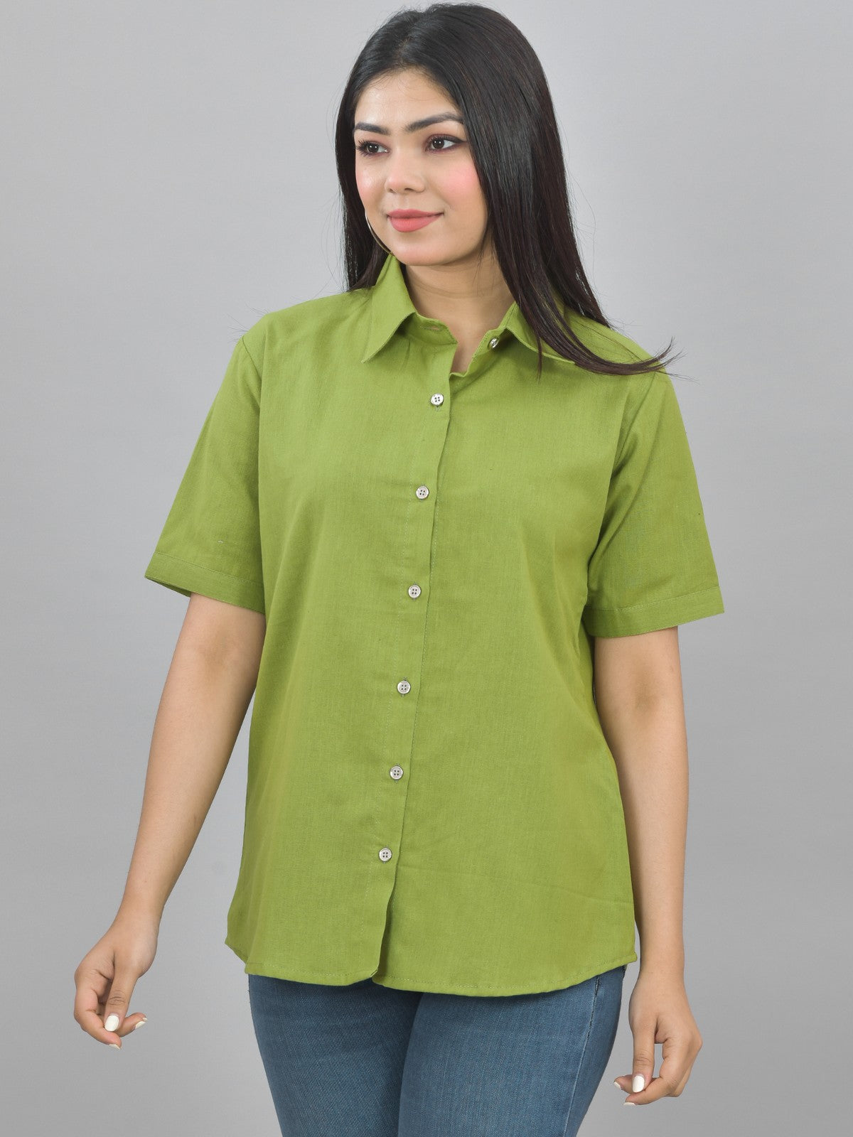 Women Solid Olive Green Half Sleeve Spread Collar Cotton Shirt