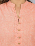 Womens Orange Woven Design Handloom Cotton Frontslit Short Kurti