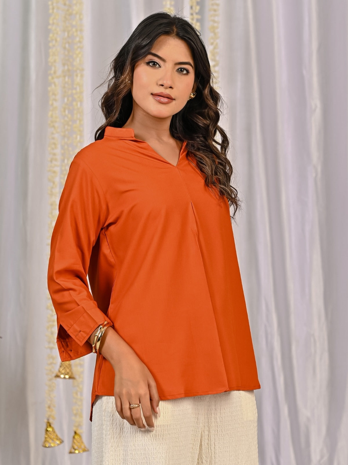 Discover our Solid Viscose V-Neck Collar Pleated Top for Women, designed to blend comfort with timeless style. Crafted from premium viscose fabric, this chic top features a flattering V-neck with a mandarin collar, elegant pleated detailing, and versatile 3/4th sleeves for a modern touch. Available in sizes S to 2XL and a wide range of 10 vibrant colors, it ensures the perfect fit for every woman. Ideal for both casual outings and office wear, this stylish top can be effortlessly paired with jeans, trousers, or skirts for a polished look. Soft, breathable, and easy to style, it’s a wardrobe .