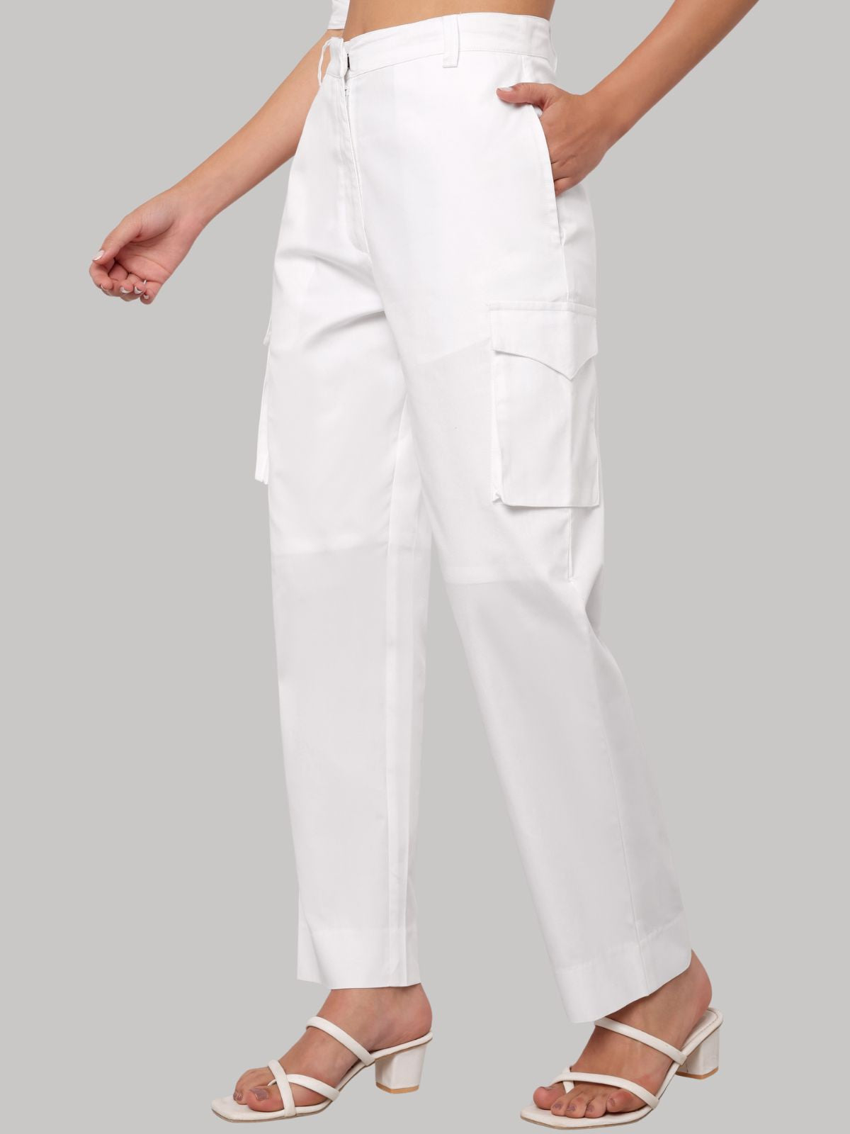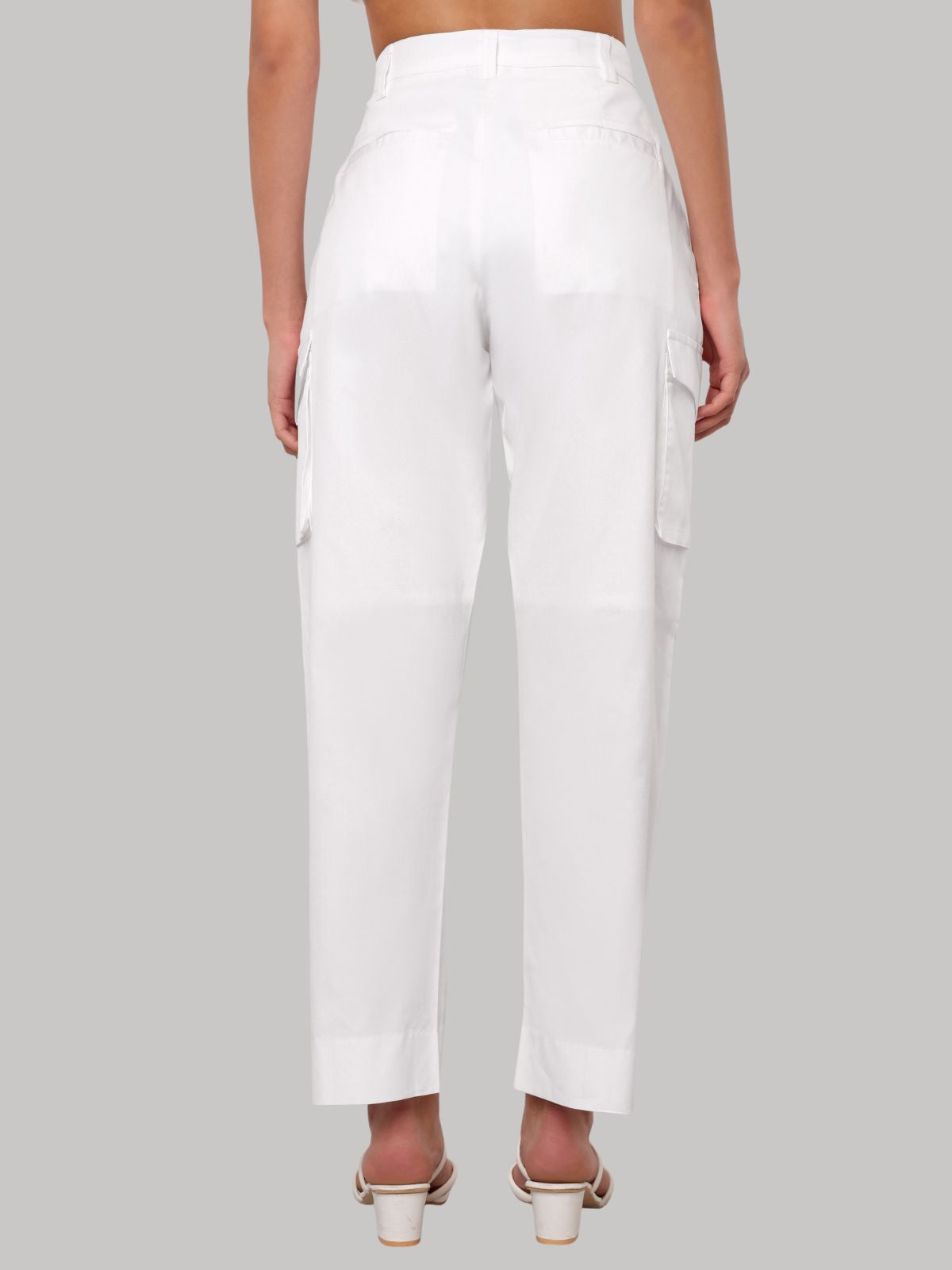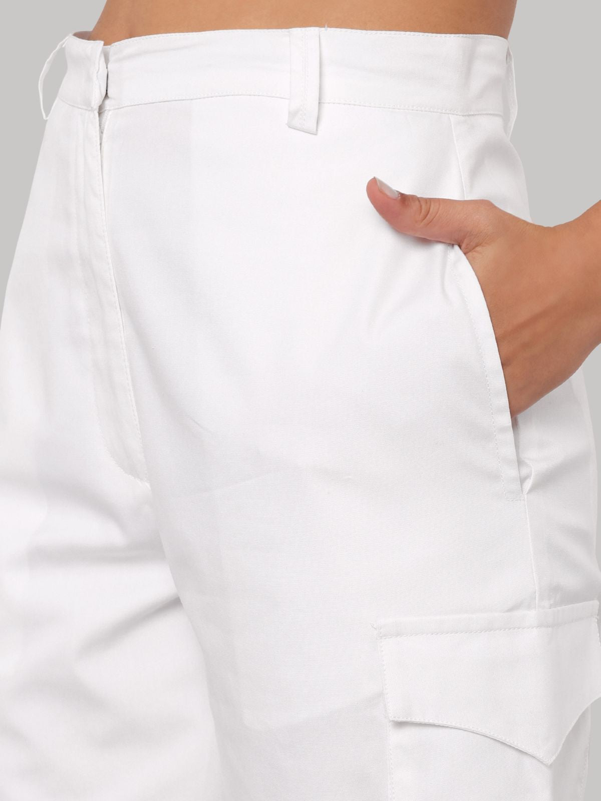 Wear white trouser confidently with a knee length soft cotton lining at front and back. A very comfortable cotton poplin cargo pant for a lazy day.