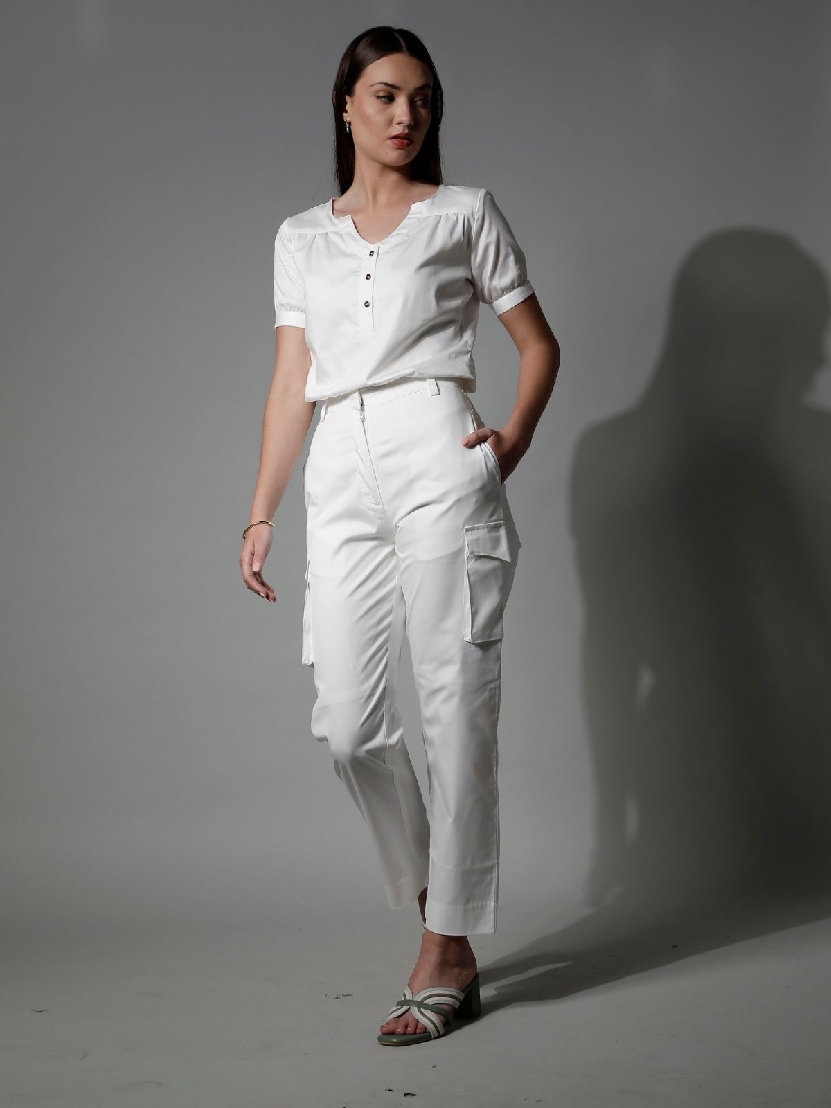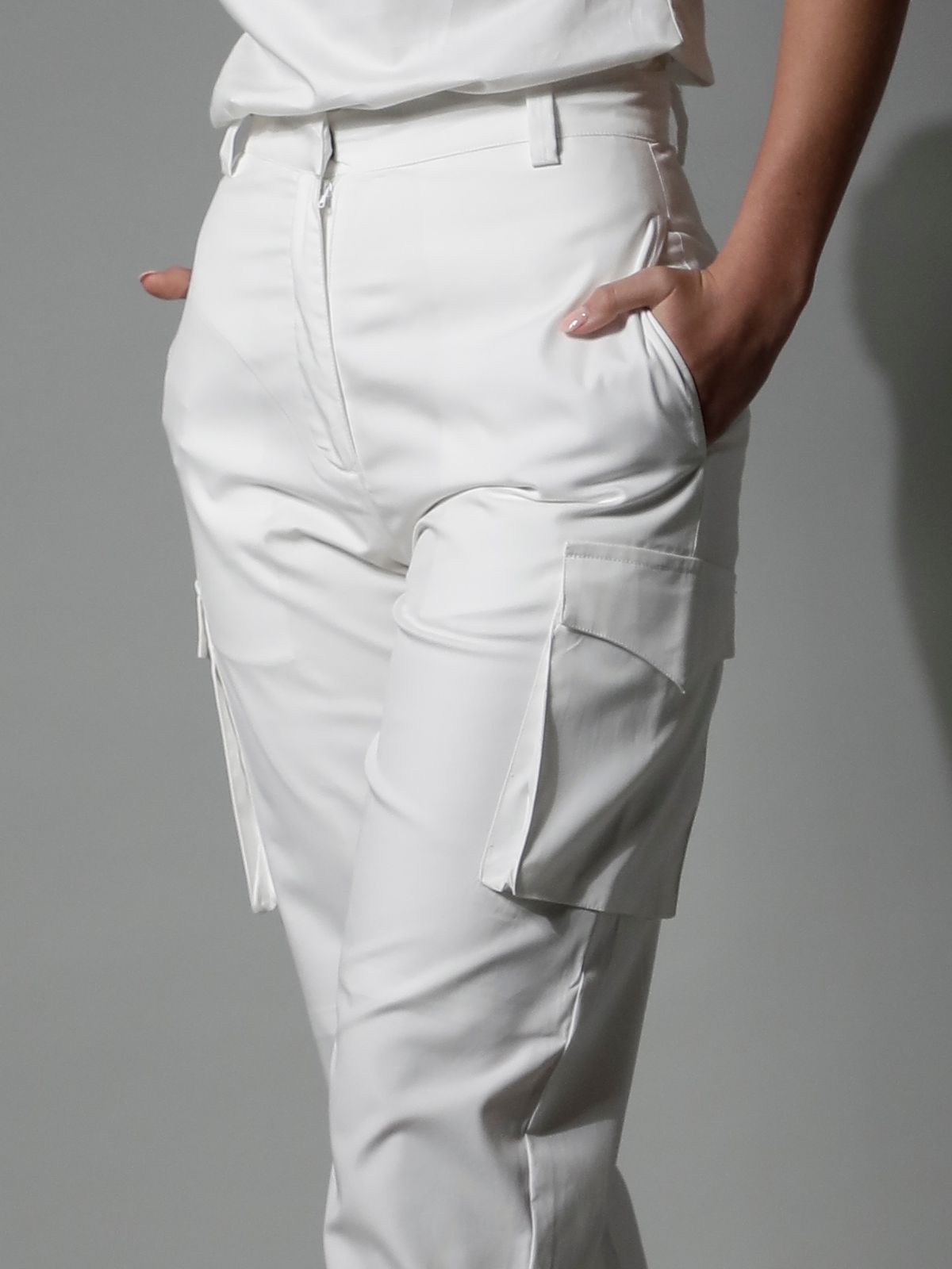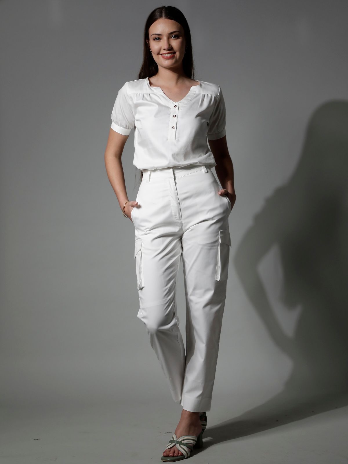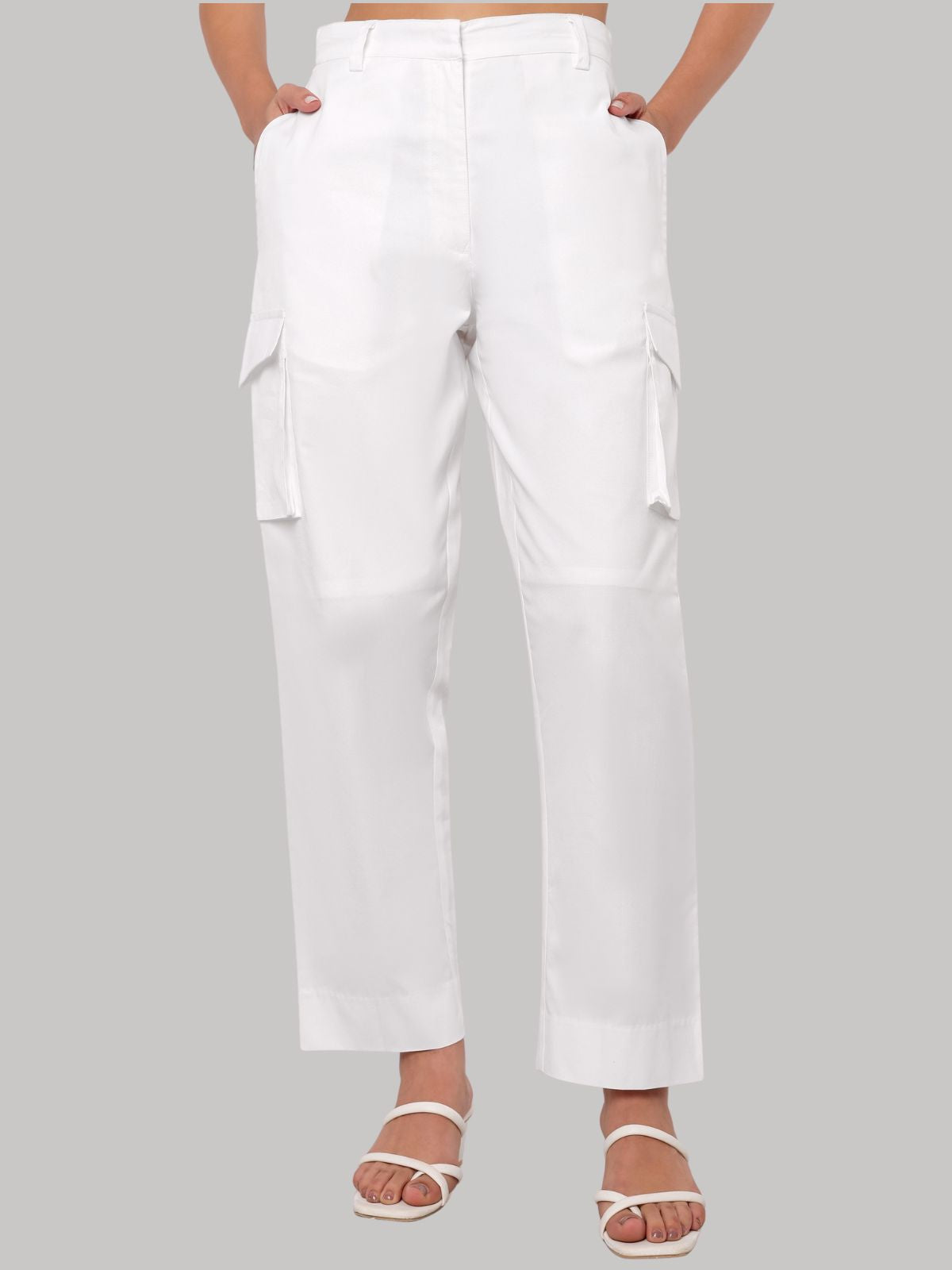 Wear white trouser confidently with a knee length soft cotton lining at front and back. A very comfortable cotton poplin cargo pant for a lazy day.