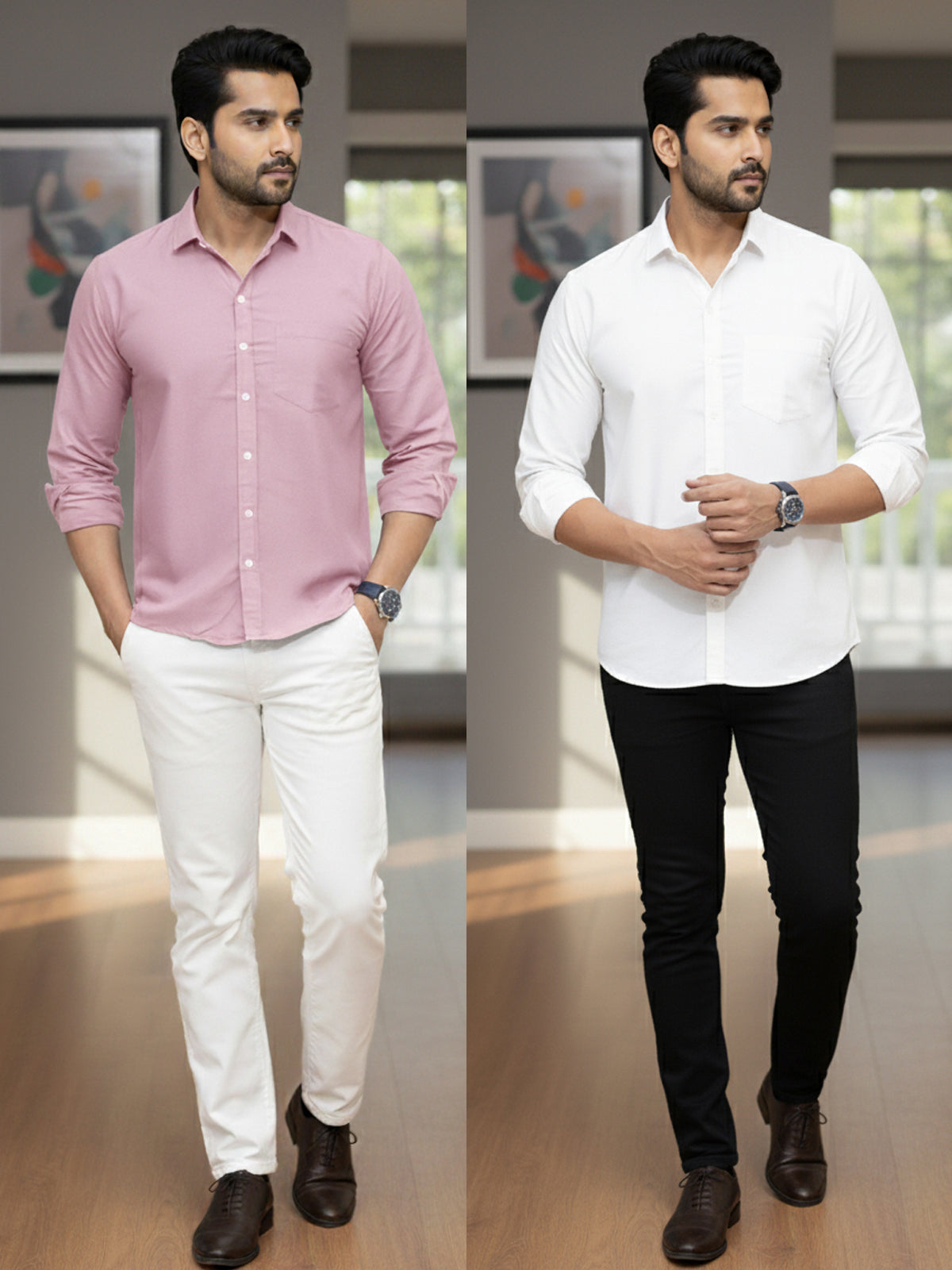 These stylish men's Airy linen shirts Combo with a solid color design will give your outfit a timeless, sophisticated touch. This full-sleeve shirt is perfect for both formal and casual settings because of its durability and all-day comfort. The spread collar adds a sophisticated touch, and the button closure ensures a neat fit. Made from a high-quality linen fabric, this shirt's soft feel and breathability make it ideal for year-round wear. Wear it with pants for a polished office look or jeans for a laid-back weekend outing. This multipurpose shirt is a wardrobe essential for the modern man and is available in a variety of sizes.