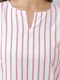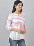 Womens Regular Fit Pink Single Stripe Cotton Top