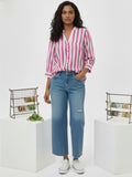 Pink Pleated shoulder Stripe Shirt