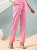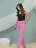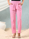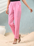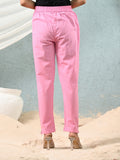 Women's Pink Regular Fit Elastic Cotton Trouser