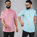 Pack Of 2 Mens Regular Fit Pink And Sky Blue Half Sleeve Cotton Short Kurta Combo